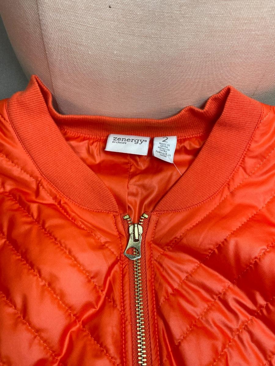 Chicos size 2 compares to a large or size 12. Stretch rib inset on arms. Excellent condition.