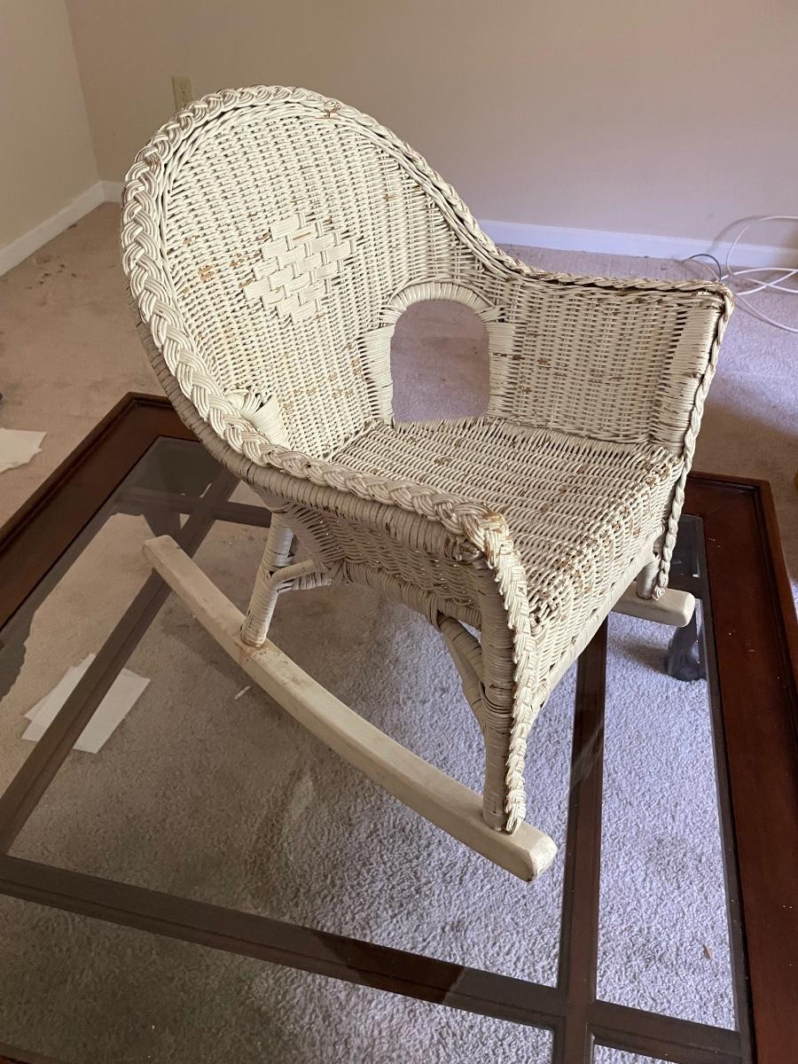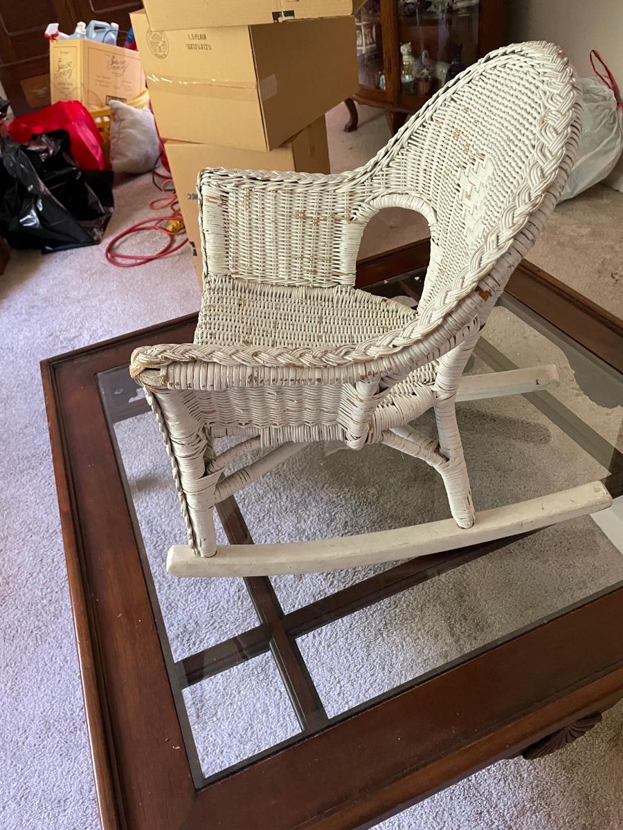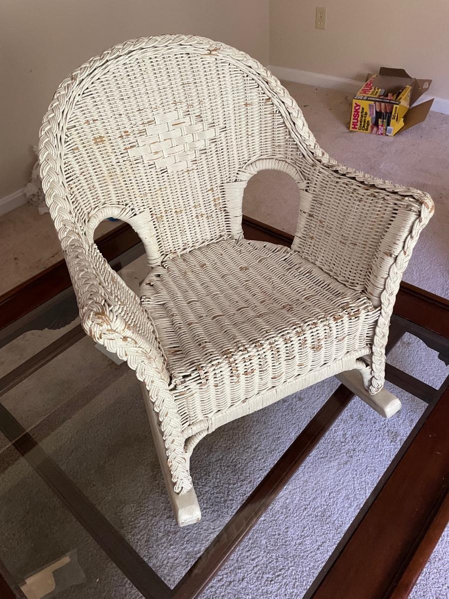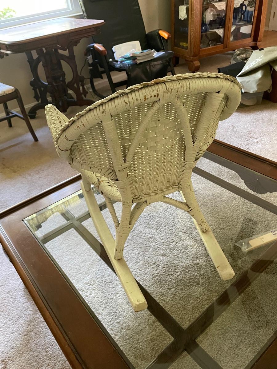 Childs Antique Wicker Rocker. Good Condition. Measures 18w x 16d x 22h