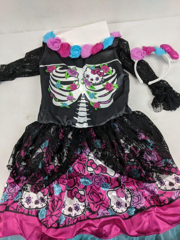 Child Costume, Day of the Dead Hello Kitty, Size M. 8-10, Open Pkg, Dress & Headband - New