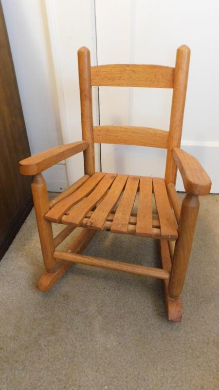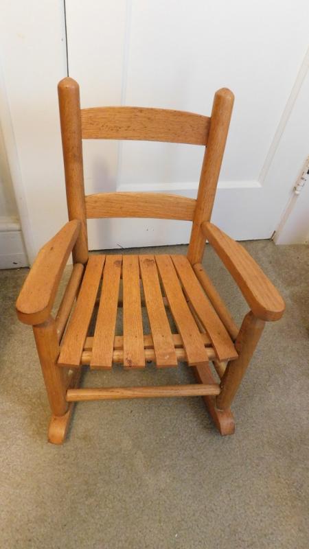 Child or Doll Oak Rocking Chair. Very well built and heavy. Nice piece.