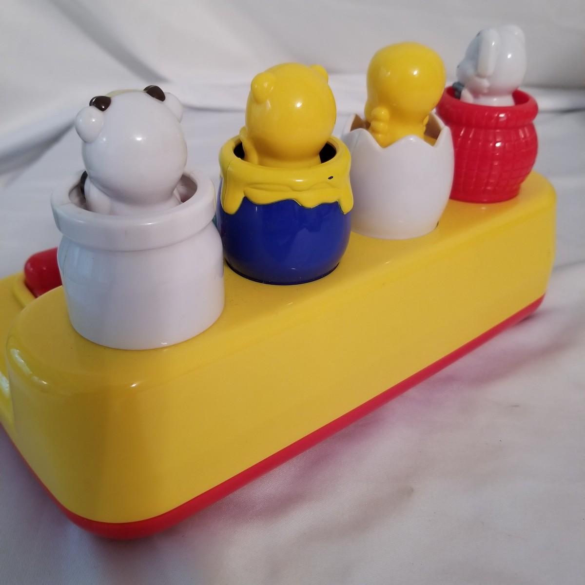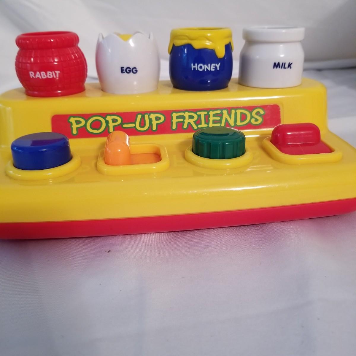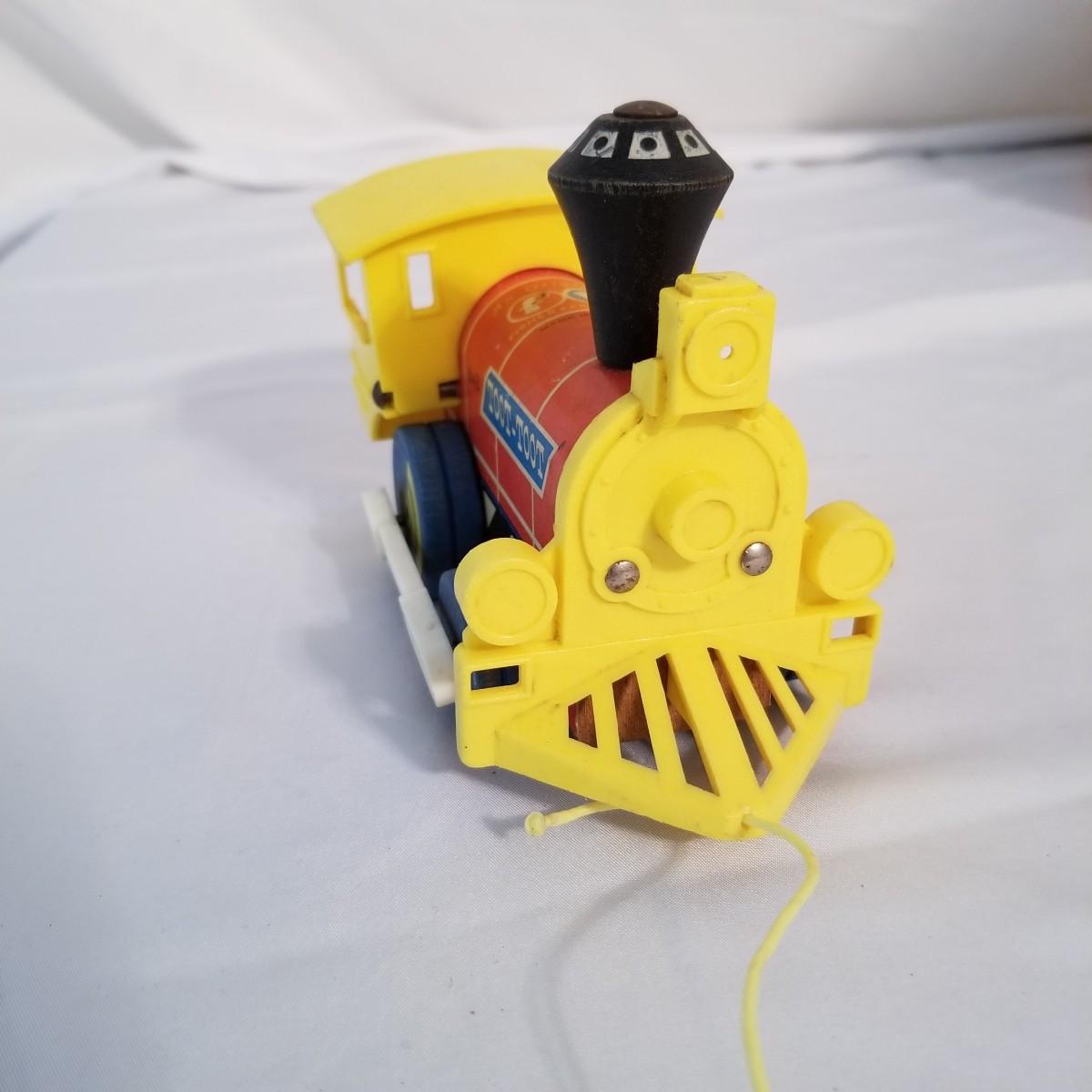 Seven pieces of fun for younger kids. Two boomerangs, a pull choo choo train, and a cement mixer. Also a Jaunty Jalopy, a Mulberry Bush twist and play, and a pop up friends item. Most pieces are Fisher Price, and in fair to good condition. See photos for detail. Shipping available.