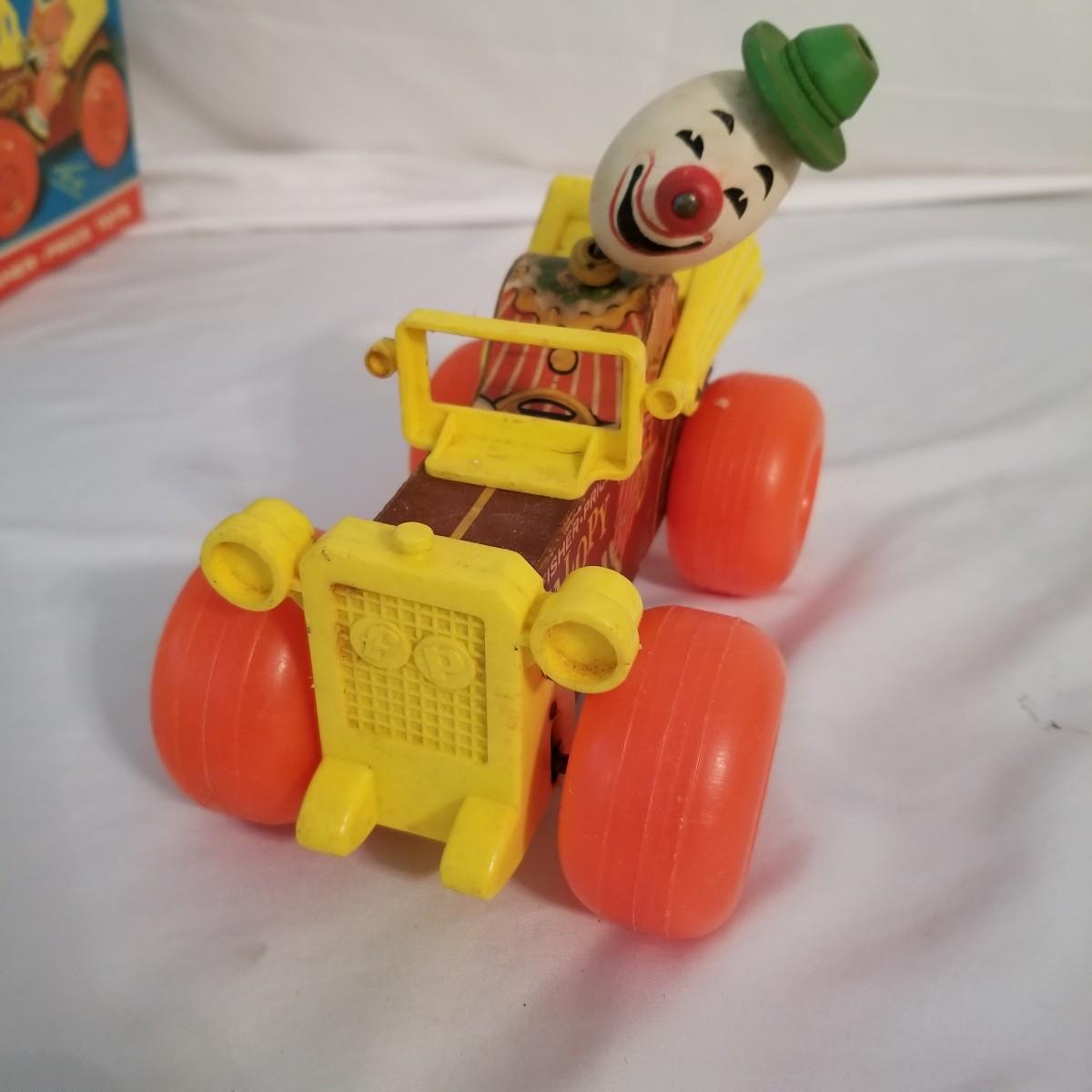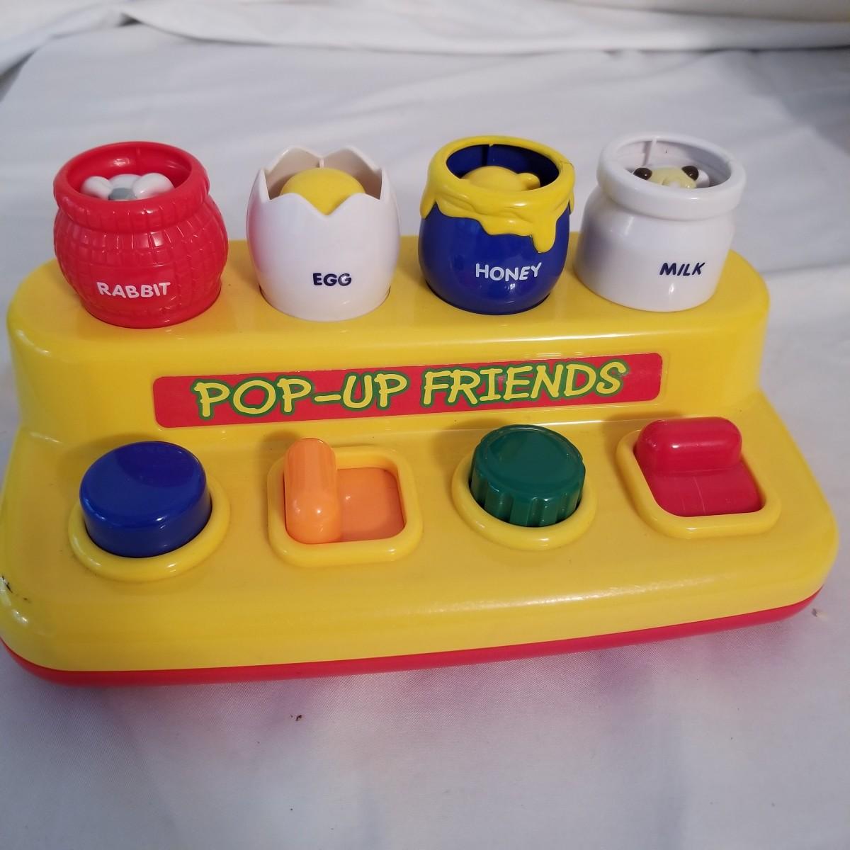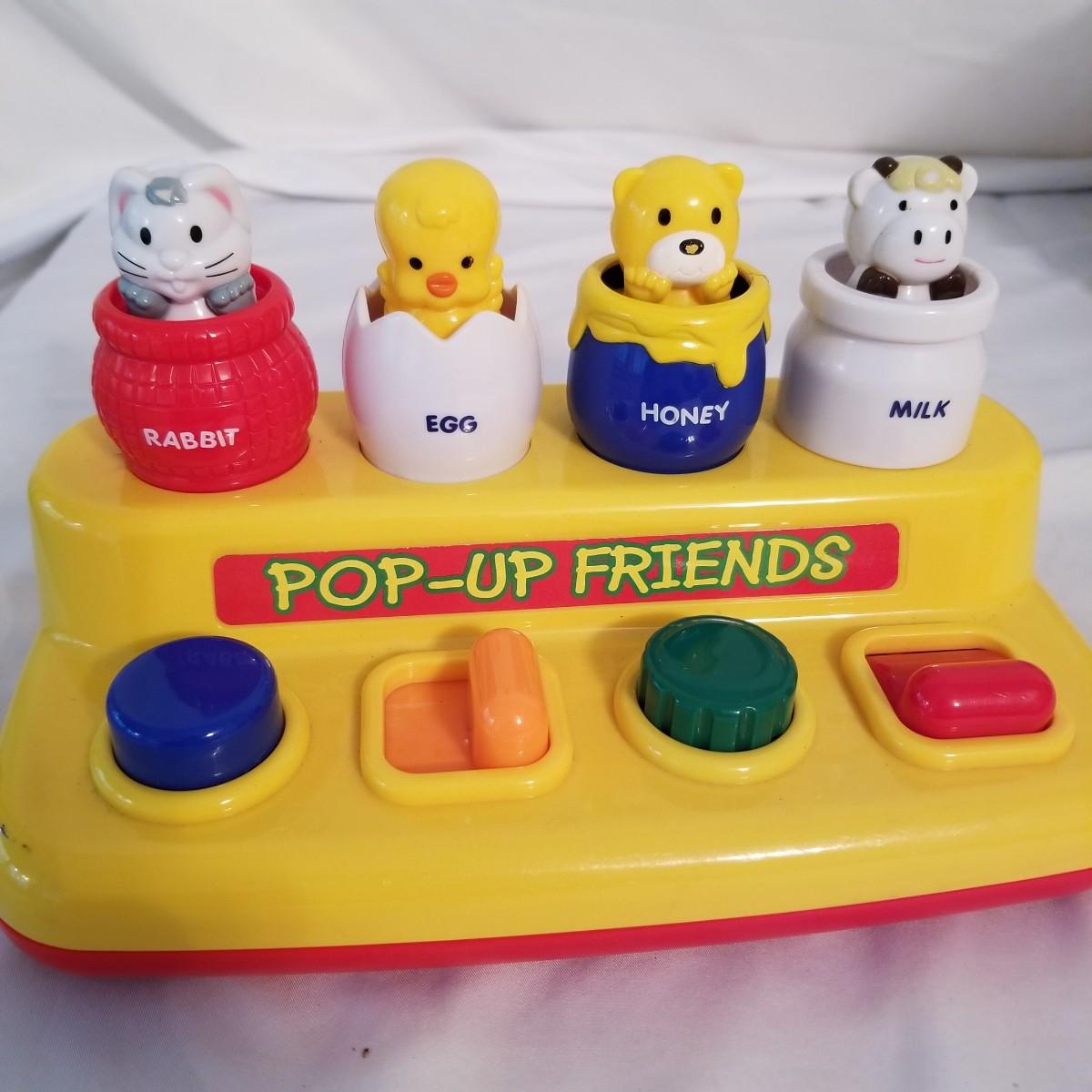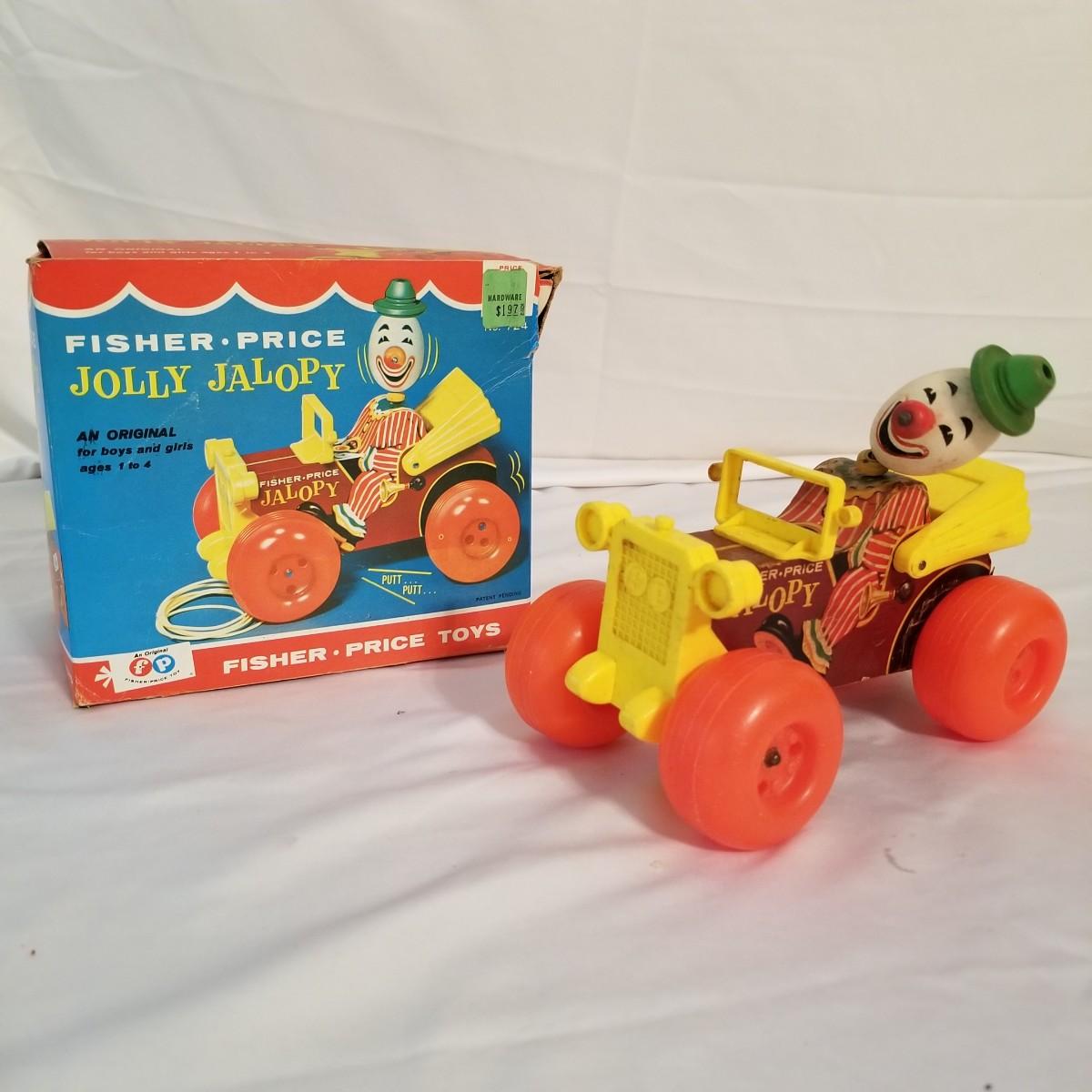 Seven pieces of fun for younger kids. Two boomerangs, a pull choo choo train, and a cement mixer. Also a Jaunty Jalopy, a Mulberry Bush twist and play, and a pop up friends item. Most pieces are Fisher Price, and in fair to good condition. See photos for detail. Shipping available.