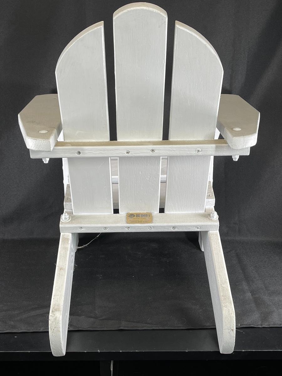 Child size Adriandack chair, Budoff, painted wood, white