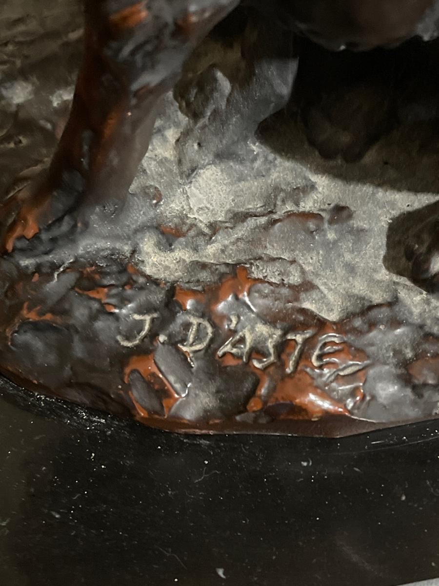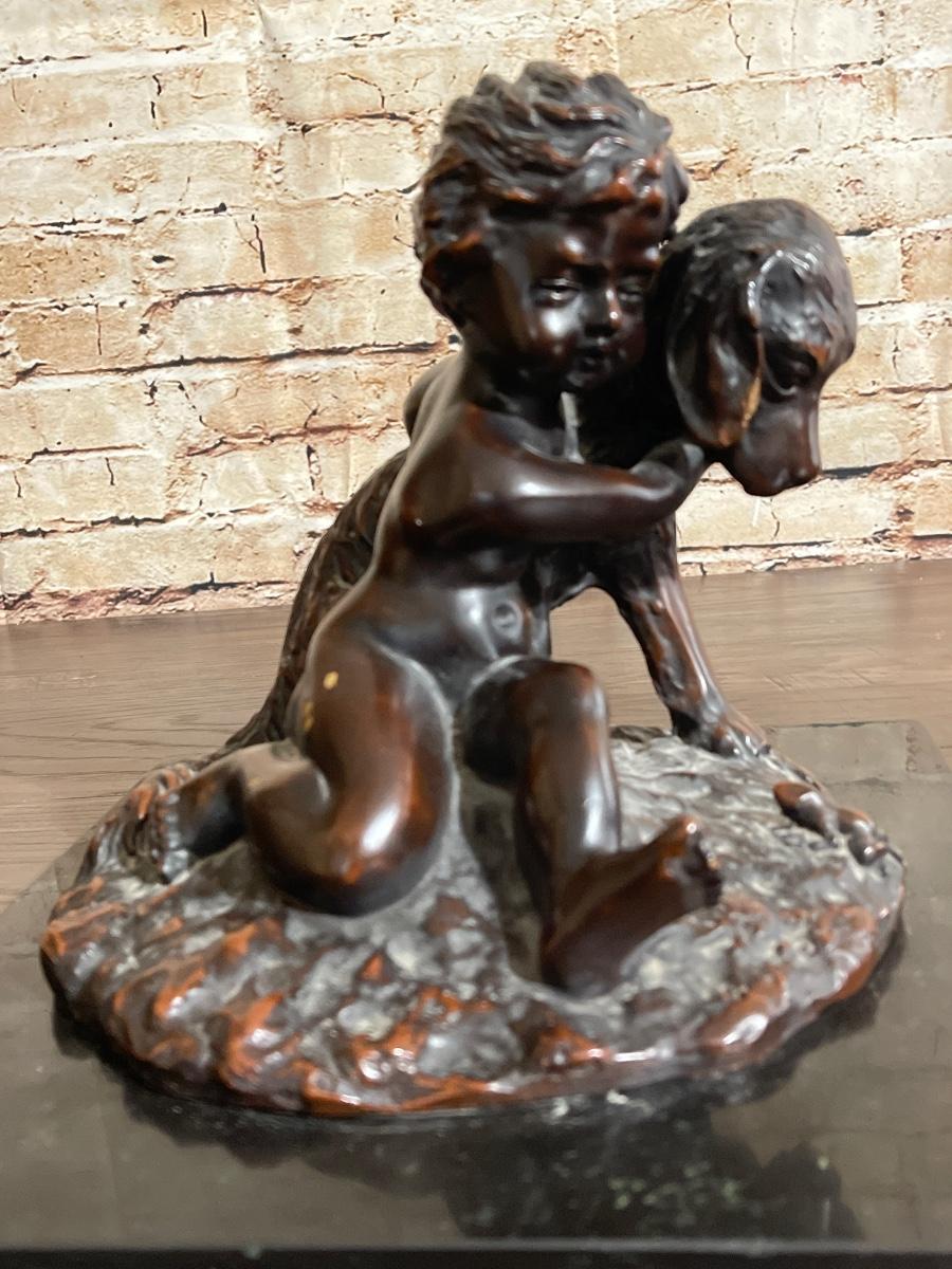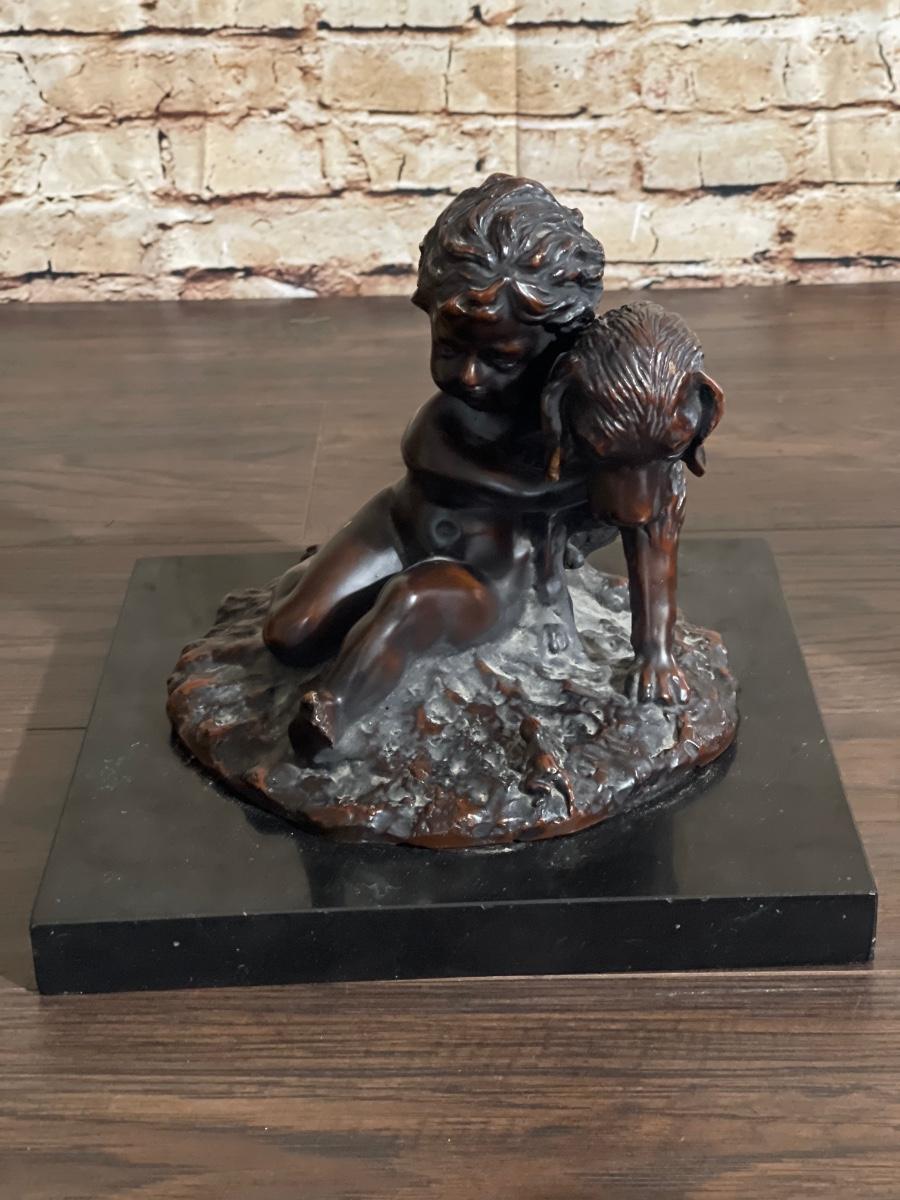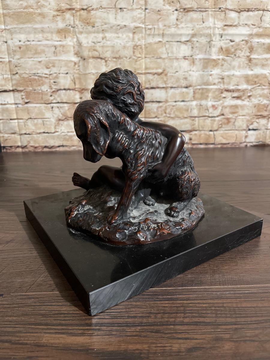 Child with Dog Bronze by J. Daste, circa 1920