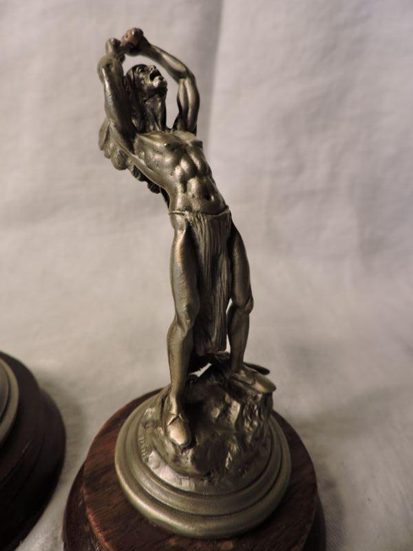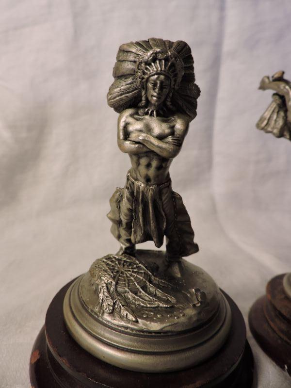Sioux War Chief and Buffalo Prayer - Blackfoot Don Polland pewter sculptures. 1980. Some broken pieces. Please view photos. **Please read Terms and Conditions before placing a bid. Pick up is Wednesday, September 25 from 4pm to 7pm and Saturday, September 28 from 9am to 1pm in Williamstown, NJ. All sales are final. All sales are as is, where is. Please review all photos. Any props included in photos are not included in listing. All measurements are approximate.