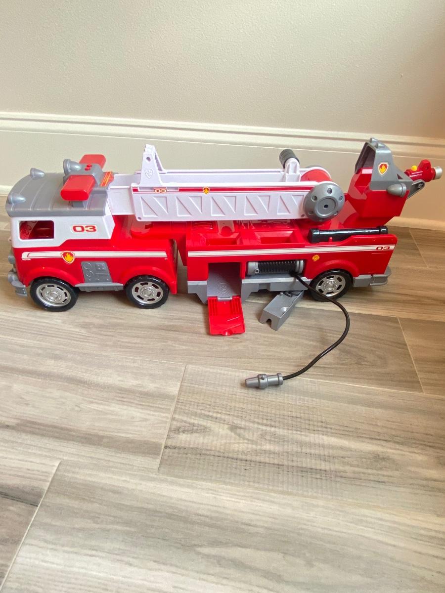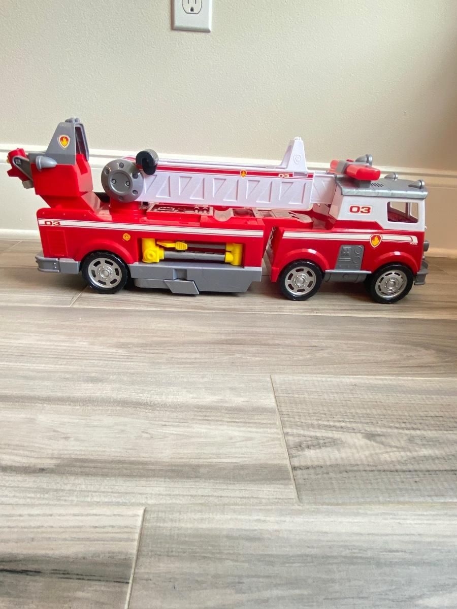 Set includes: 1 -Paw Patrol Firetruck (no accessories) Battery operated lights & sirens. Movable ladder. 24” x 11”