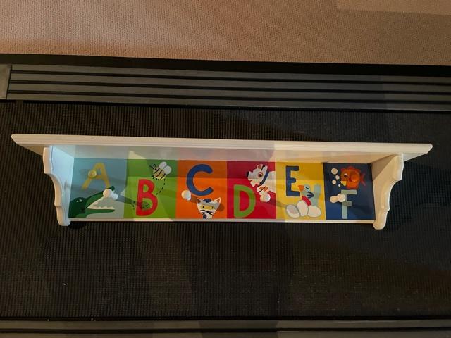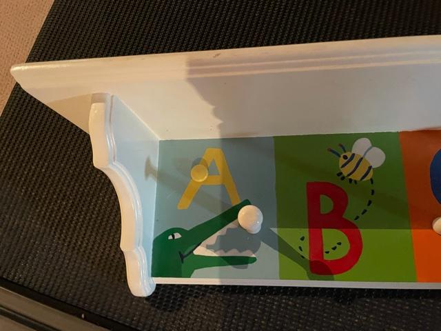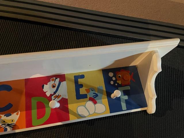 Children’s ABC coat rack/hanger      Solid wood painted white 34” x 8”