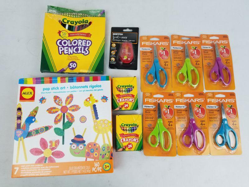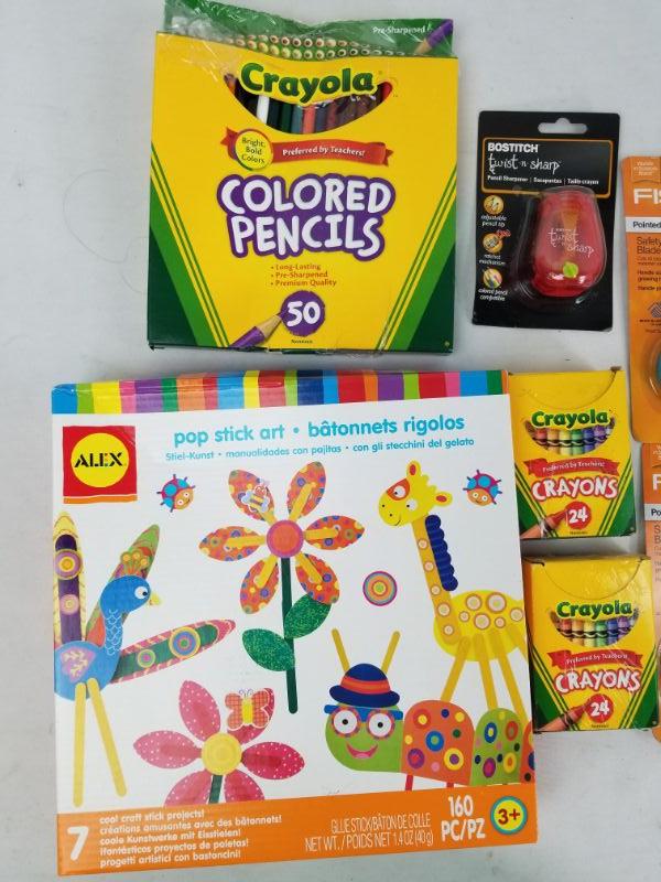 Children's Activities Lot: Scissors, Crayons, Colored Pencils, Pop Stick Art, etc - New