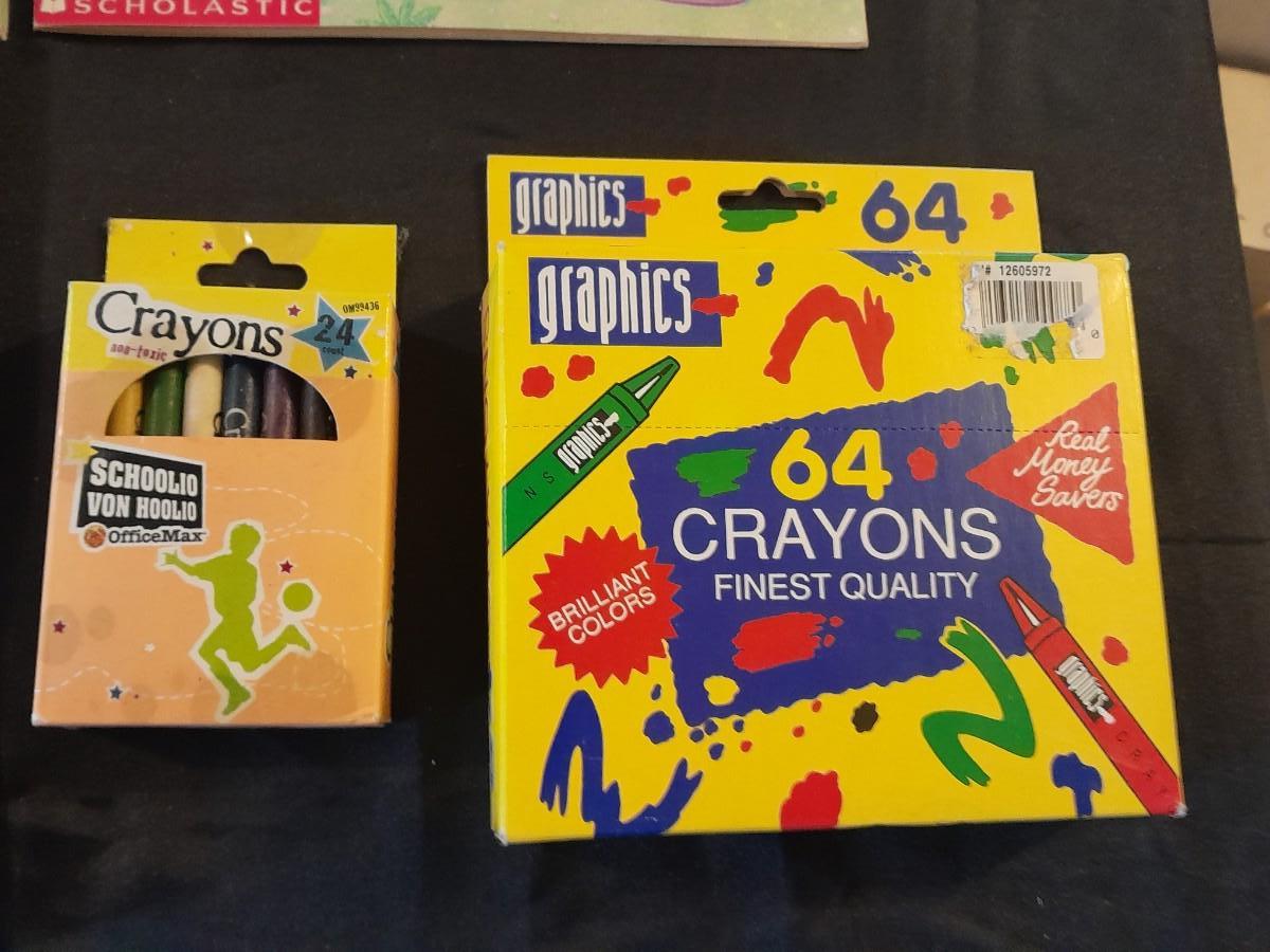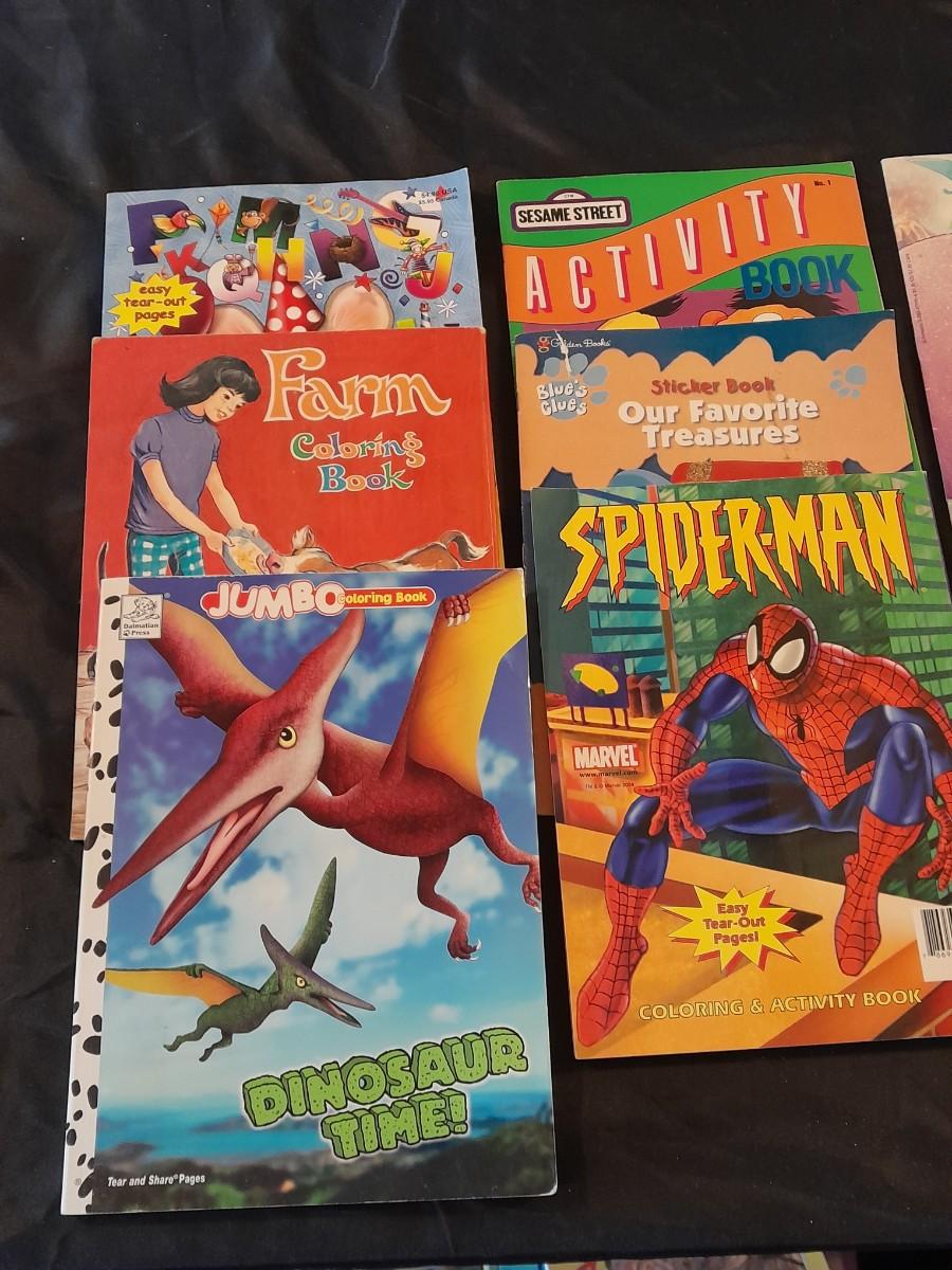 CHILDREN'S ACTIVITY BOOKS AND TWO PACKS OF CRAYONS Some books might be colored in