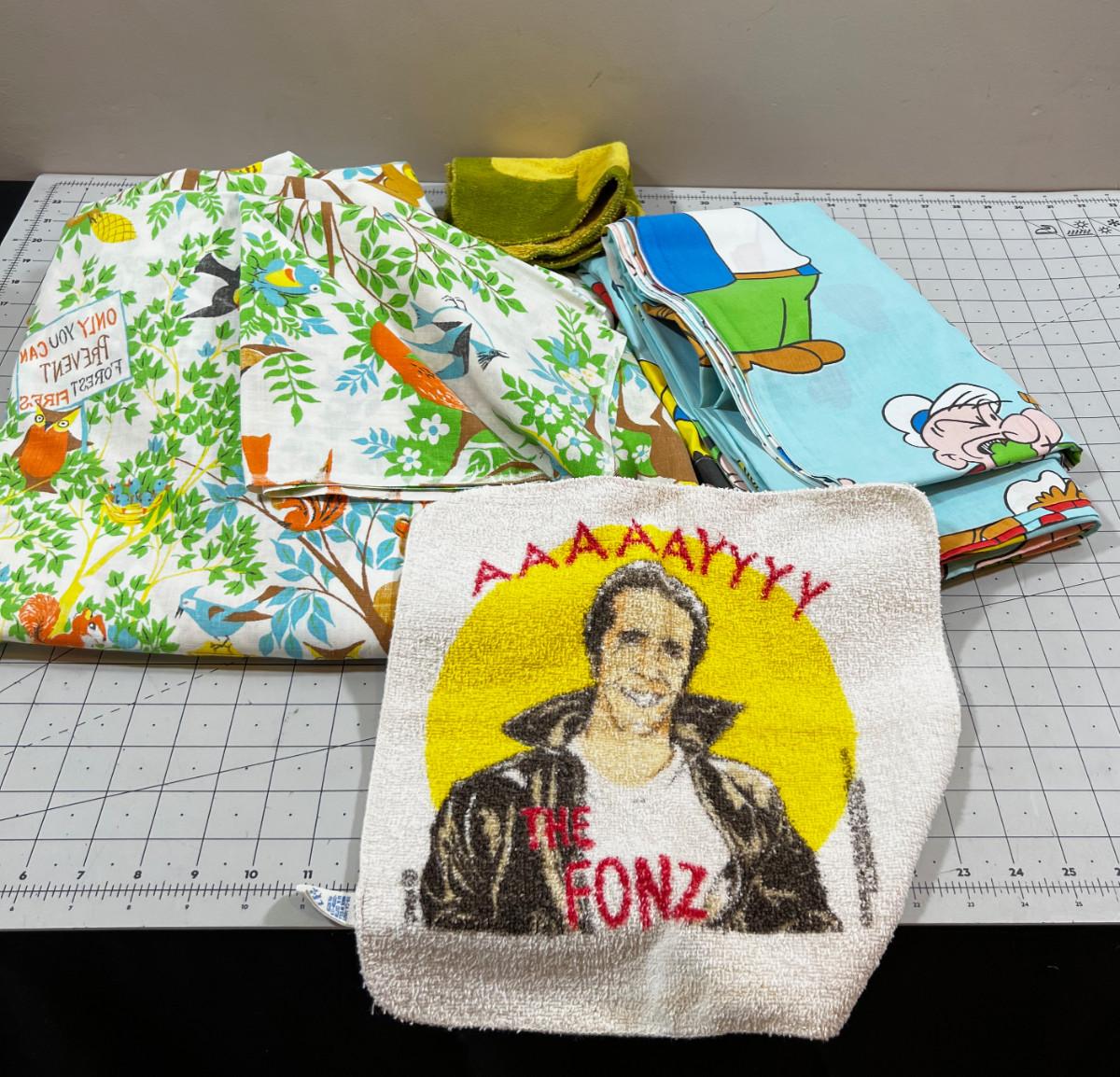 Children's Bed Linens: Smokey the Bear Set, Popeye Flat and Fonzie Wash Cloth