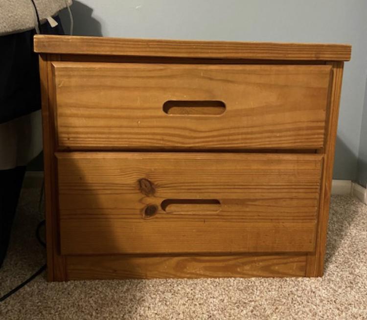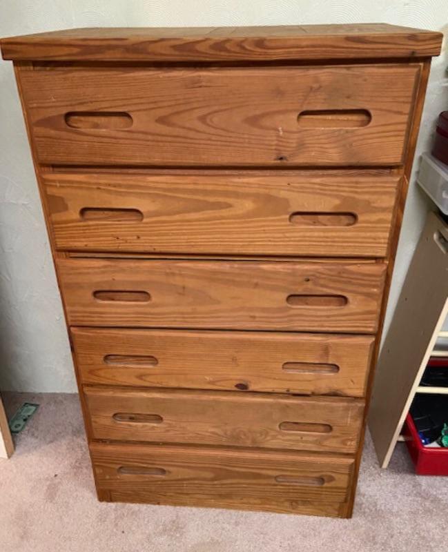 Bunkhouse style children’s bedroom set, includes chest of drawers, 3 drawer dresser with self and nightstand