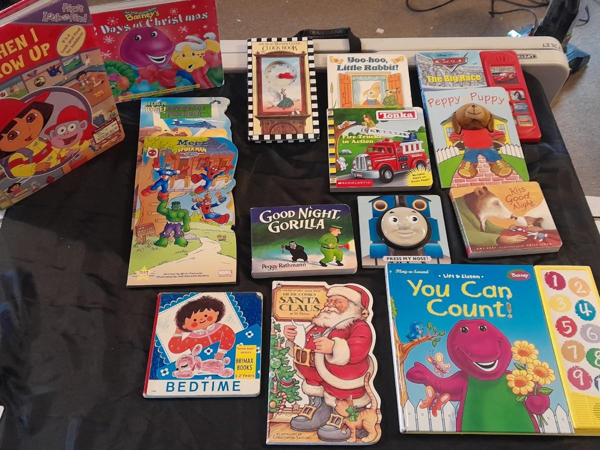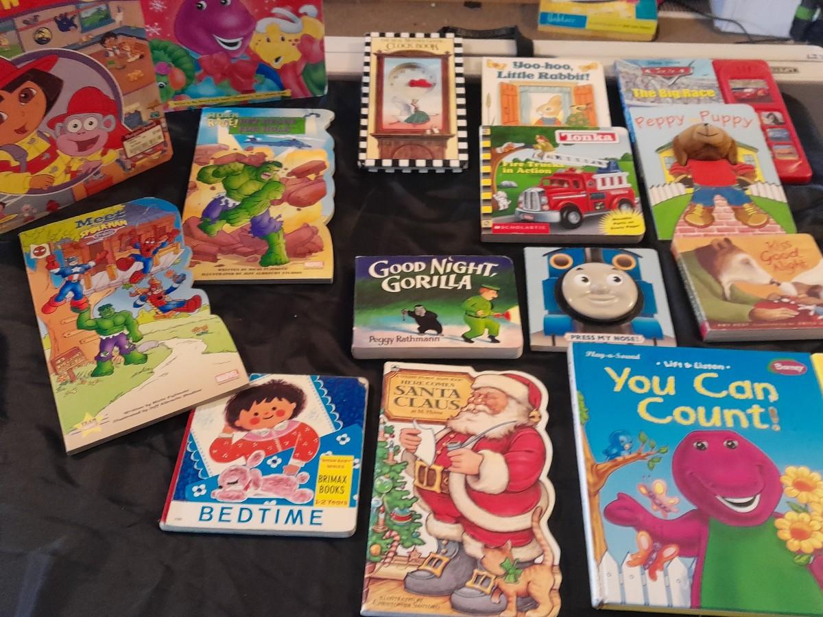 CHILDREN'S BOARD BOOKS, GREAT FOR TODDLERS!! Barney, Good night Gorilla, The Hulk, and many more!