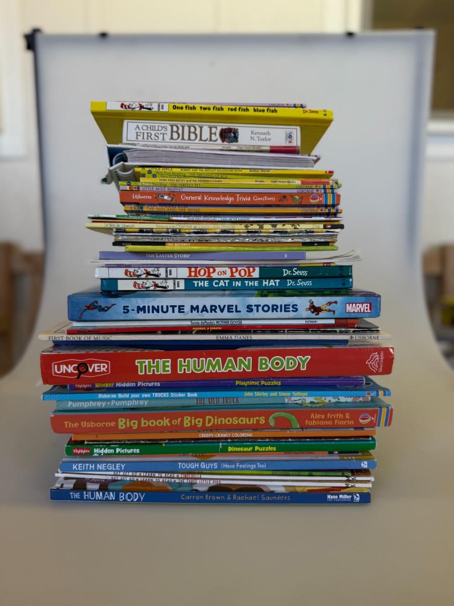 Includes Dr. Seuss classics, Marvel stories, Bible-themed reads, trivia books, and dinosaur guides. Great for early readers and young learners.