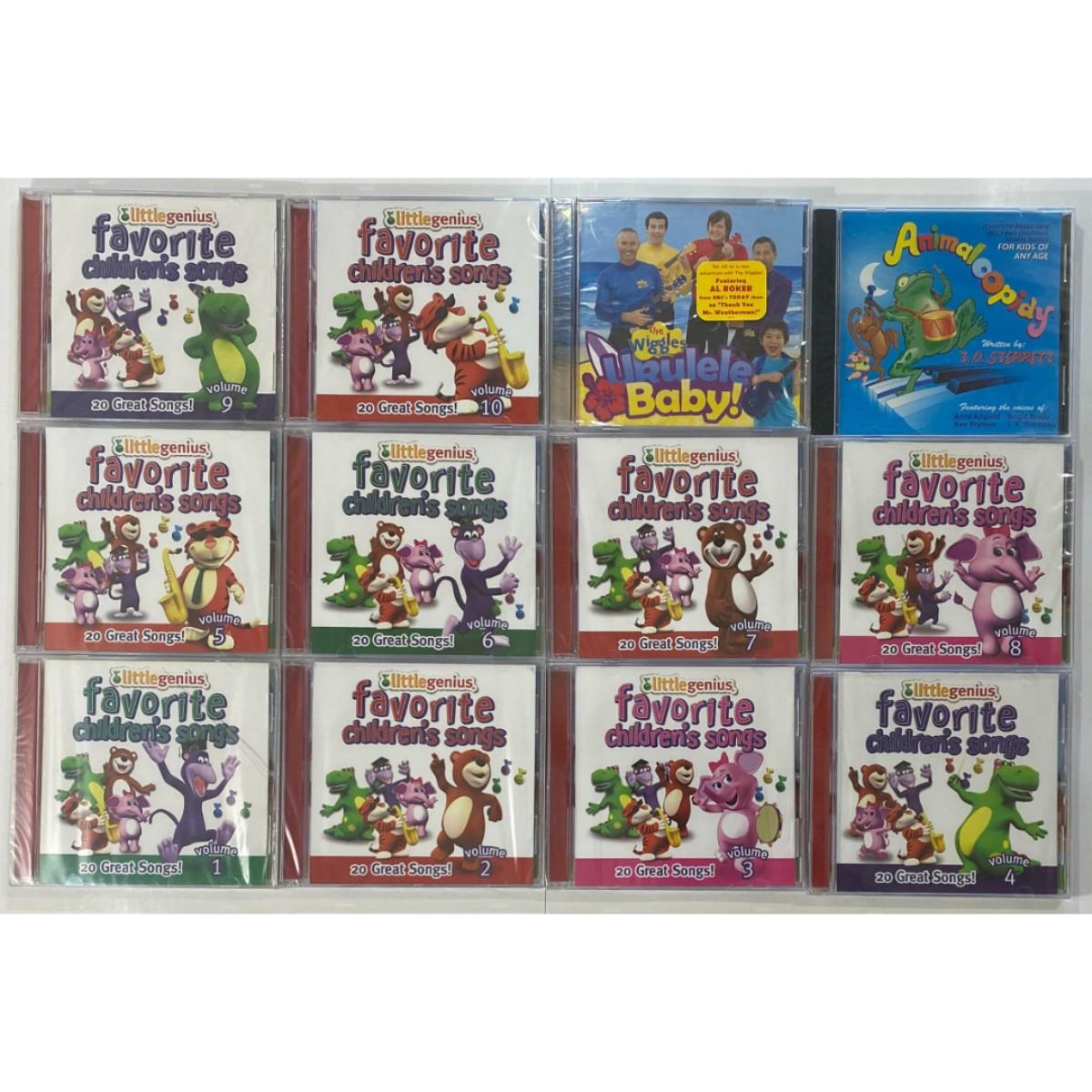 You get twelve CDs in this lot. All CDs are new and in their original sealed packaging. The back of The Wiggle's case is cracked and the front of the first CD in the Little Genius set is cracked. Item ships via media mail. Thank you for looking. As a reminder, if this is a lot, we do not break up lots. Also, all items are prepacked, so each item is sent individually. Any item that qualifies for media mail and weighs over one pound will be shipped via media mail. Otherwise, the item will be shipped USPS ground advantage, or UPS ground. Shipping for this item is $7.00. Items ship within two days after payment is received. Item SKU is CDLOT.