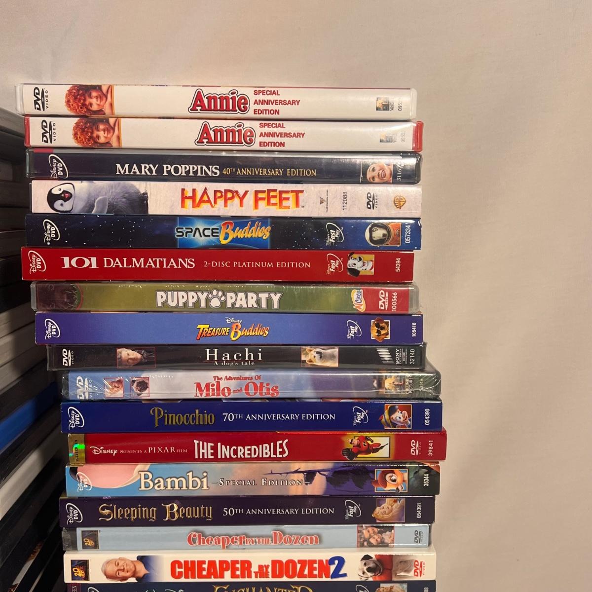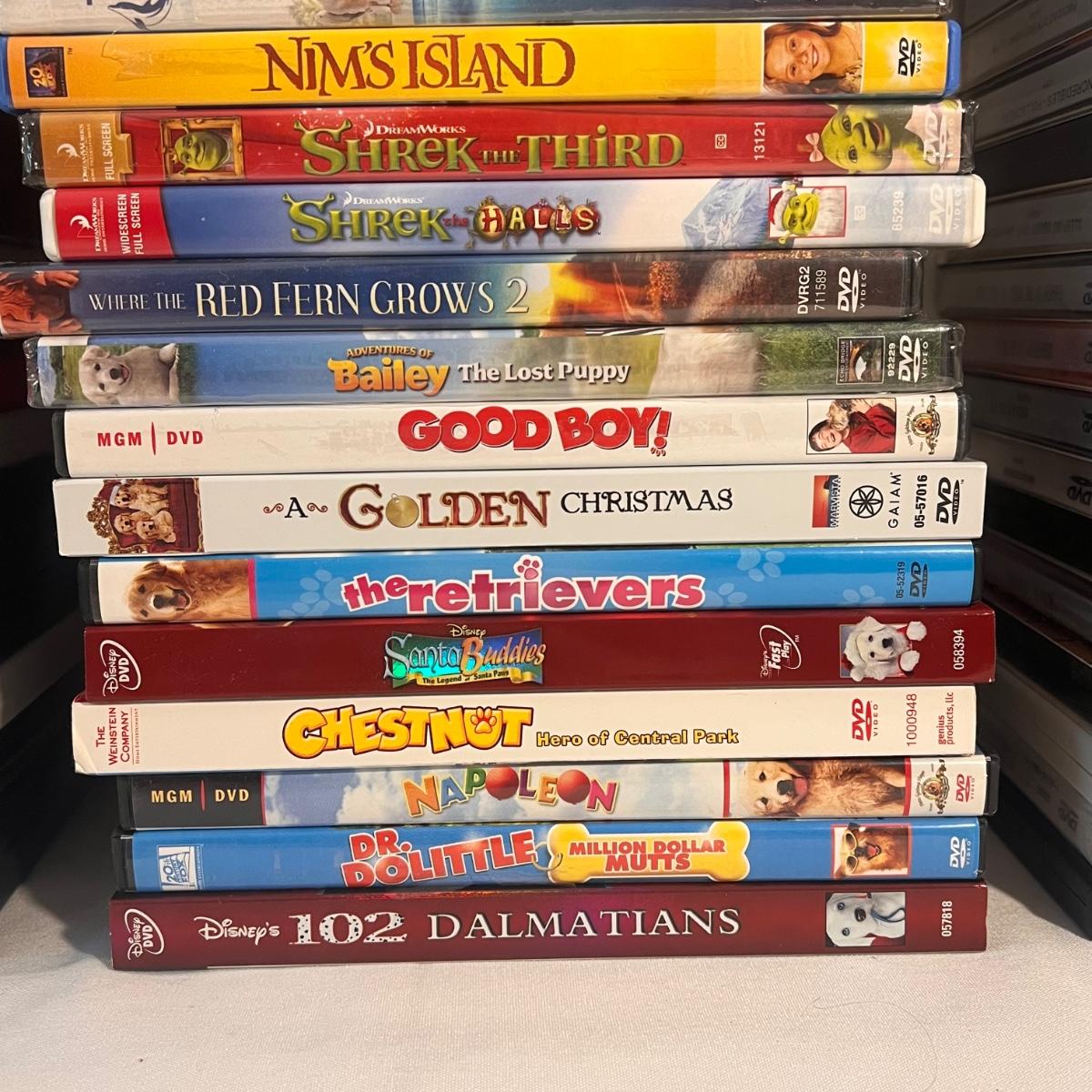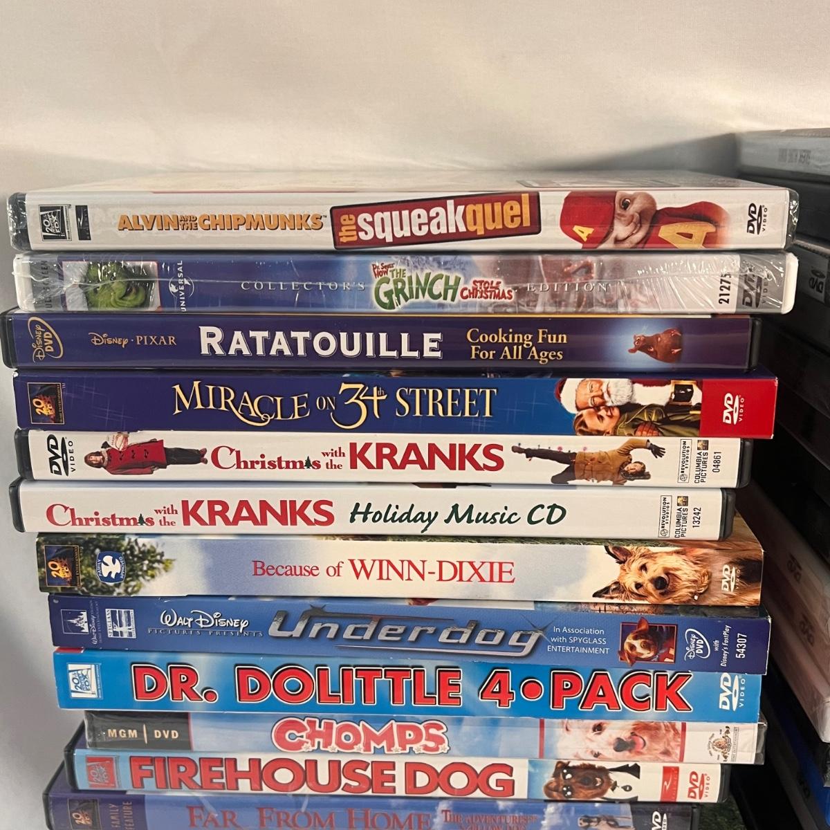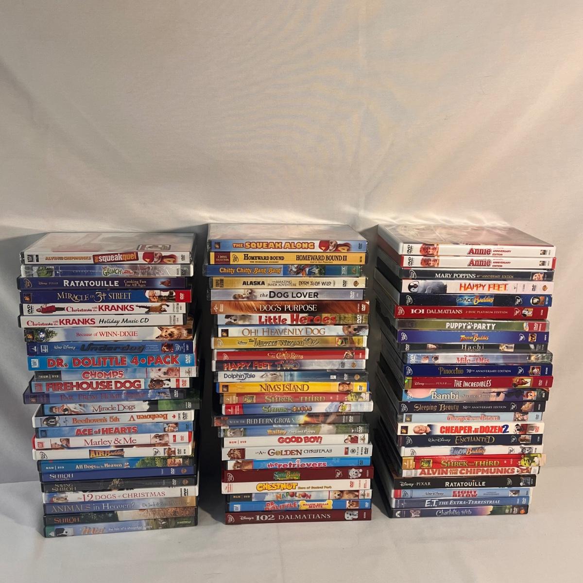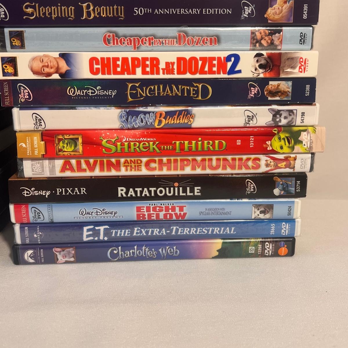 Lot includes several children’s DVDs from different decades. You’ll find E.T., Charlotte’s Web, Ratatouille, Shrek, and more. Shipping available.