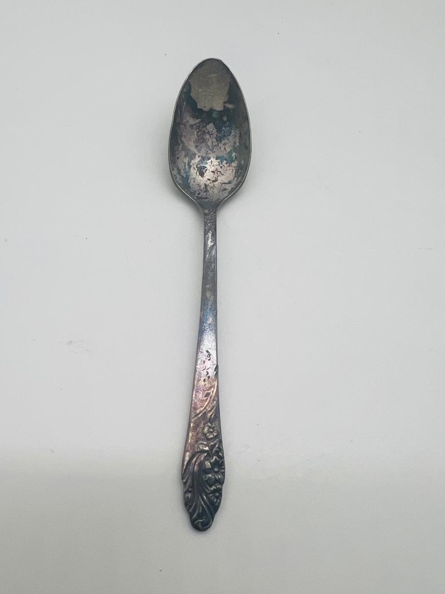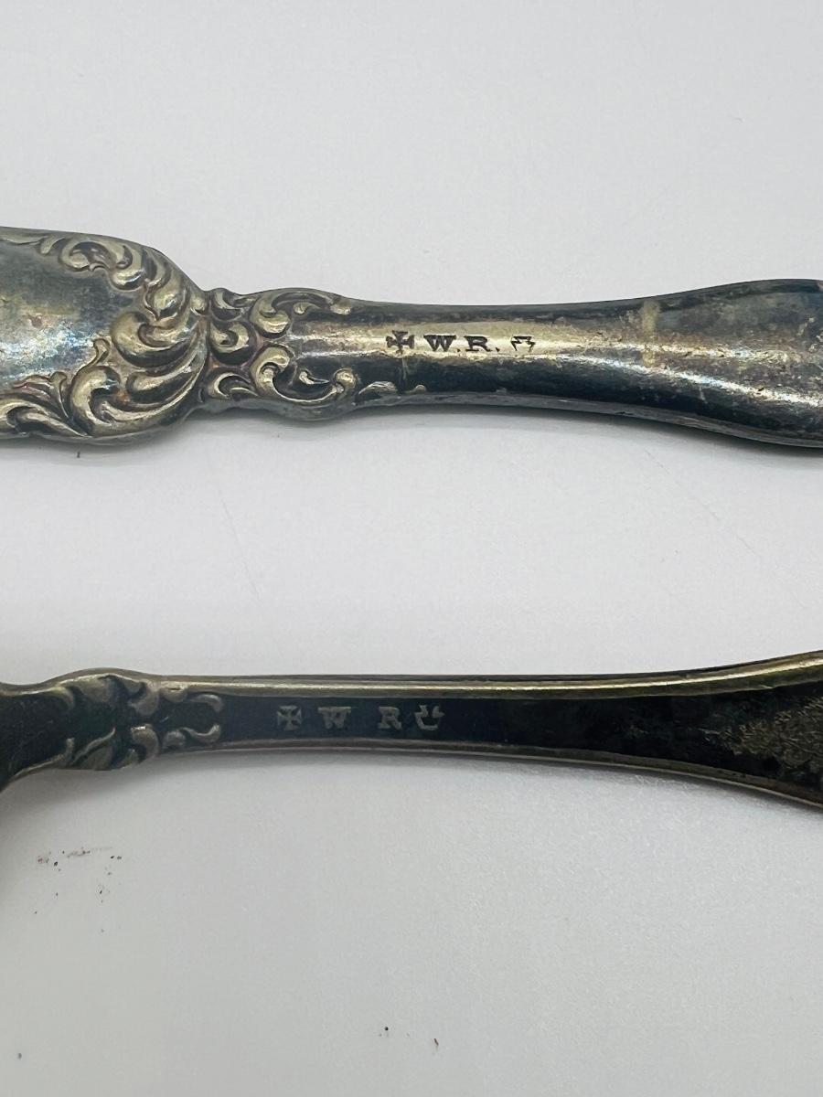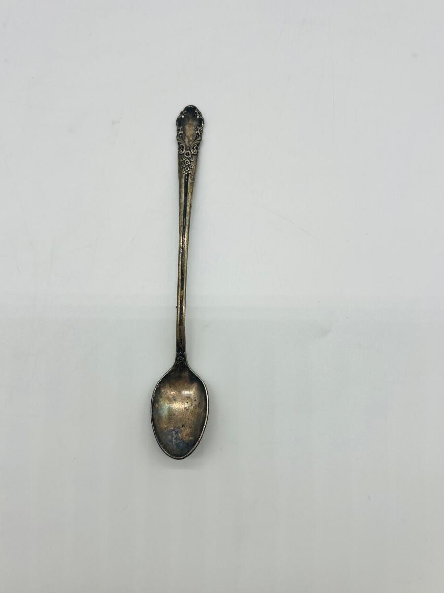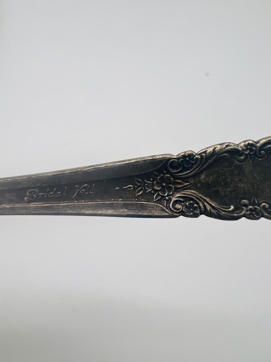 Mixture of sterling and silver plated, children’s vintage utensils, forks, spoons, and knives. Rogers Sterling Bridal veil spoon, heirloom sterling damask rose fork, Community spoon 1847 Rogers flair, Fork spoon and knife and Rogers fork and knife.