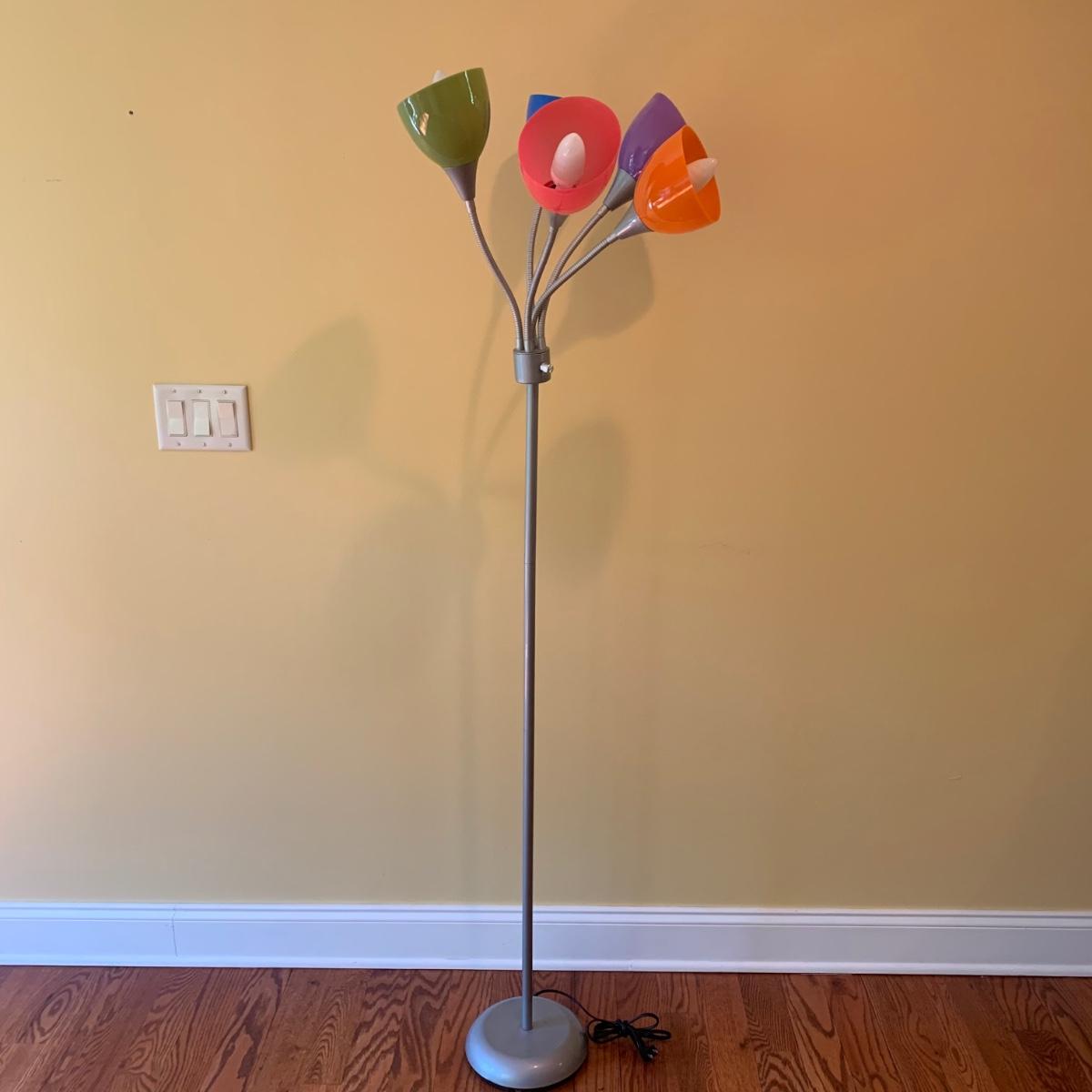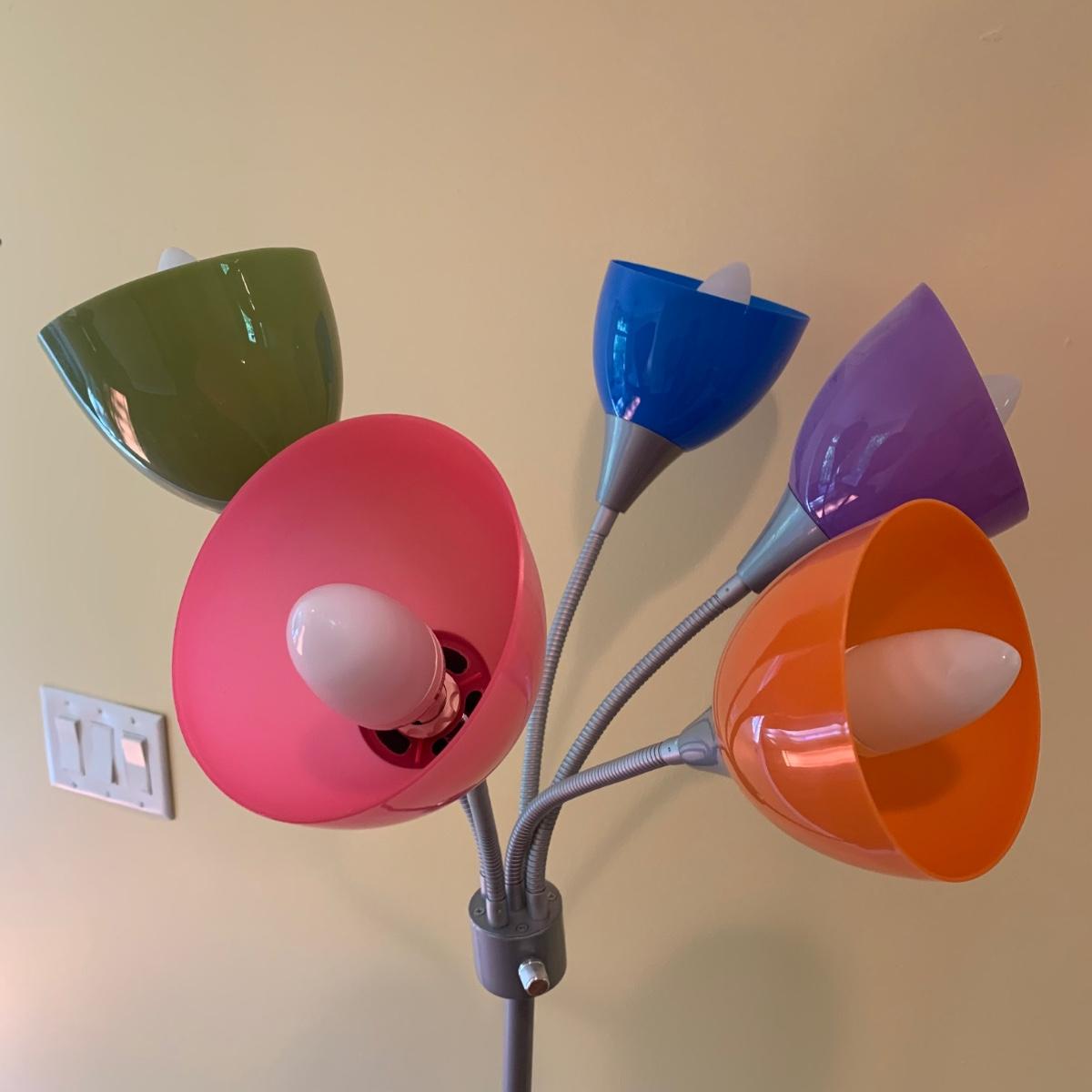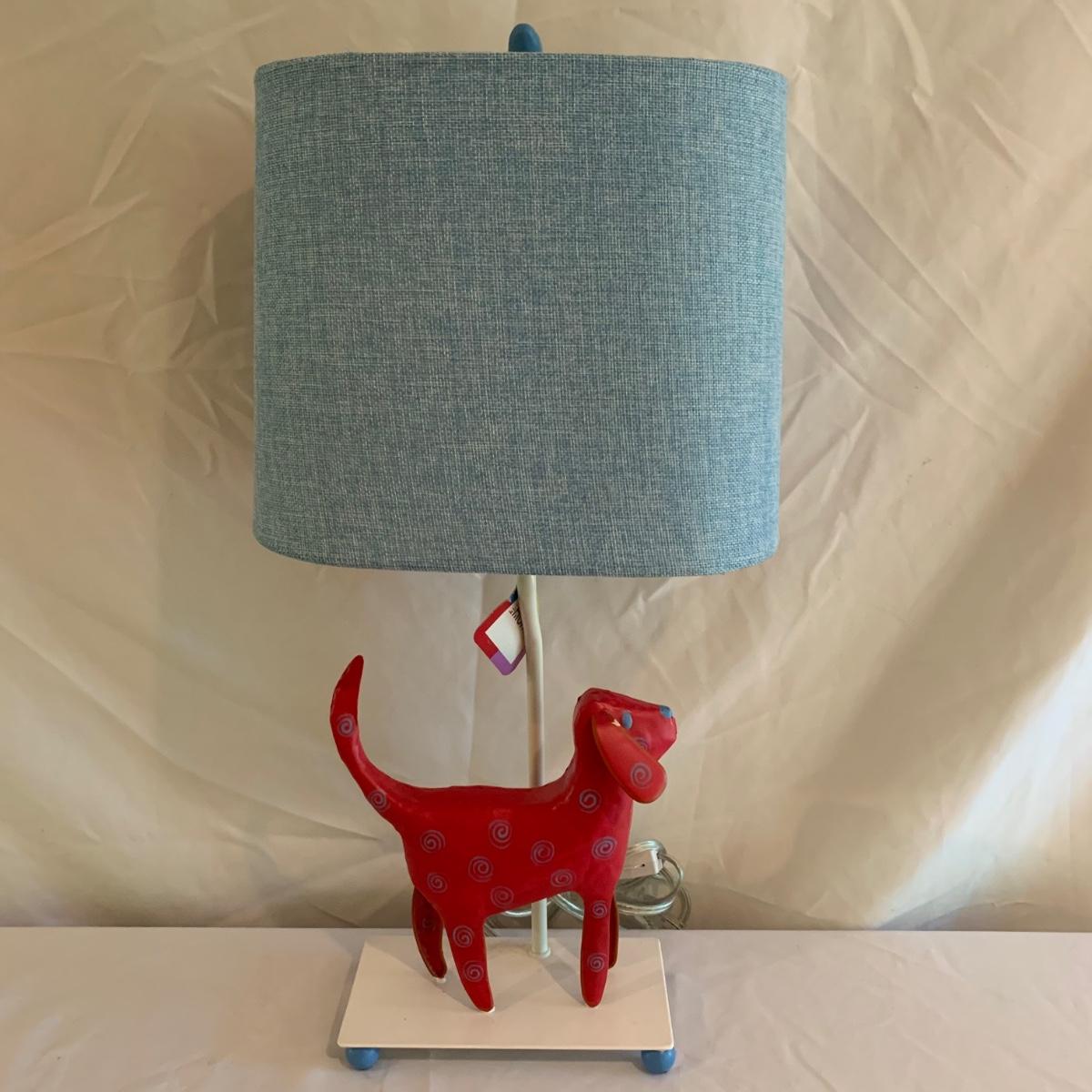 Lot includes multicolored floor lamp, green bug wall lamp, and tin red dog table lamp. All lamps power on and add a bit of color to any room. Floor lamp measures, 9”D at the base and is 67”H. Please see photos for more details. Local pickup only.