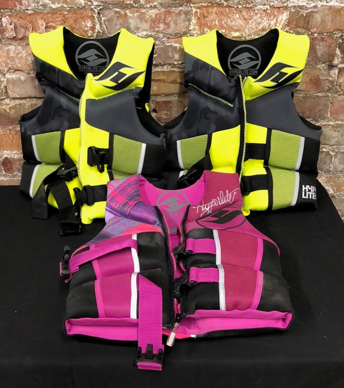 Excellent condition on these three children's life vests...Youth size rated 50 to 90 lbs...Safe boating...