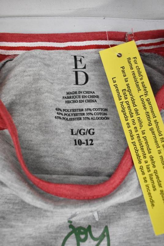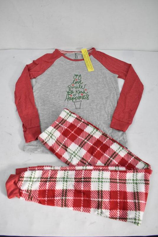 Children's Pajama Set, Red & Gray Christmas, Size Large 10-12 - New