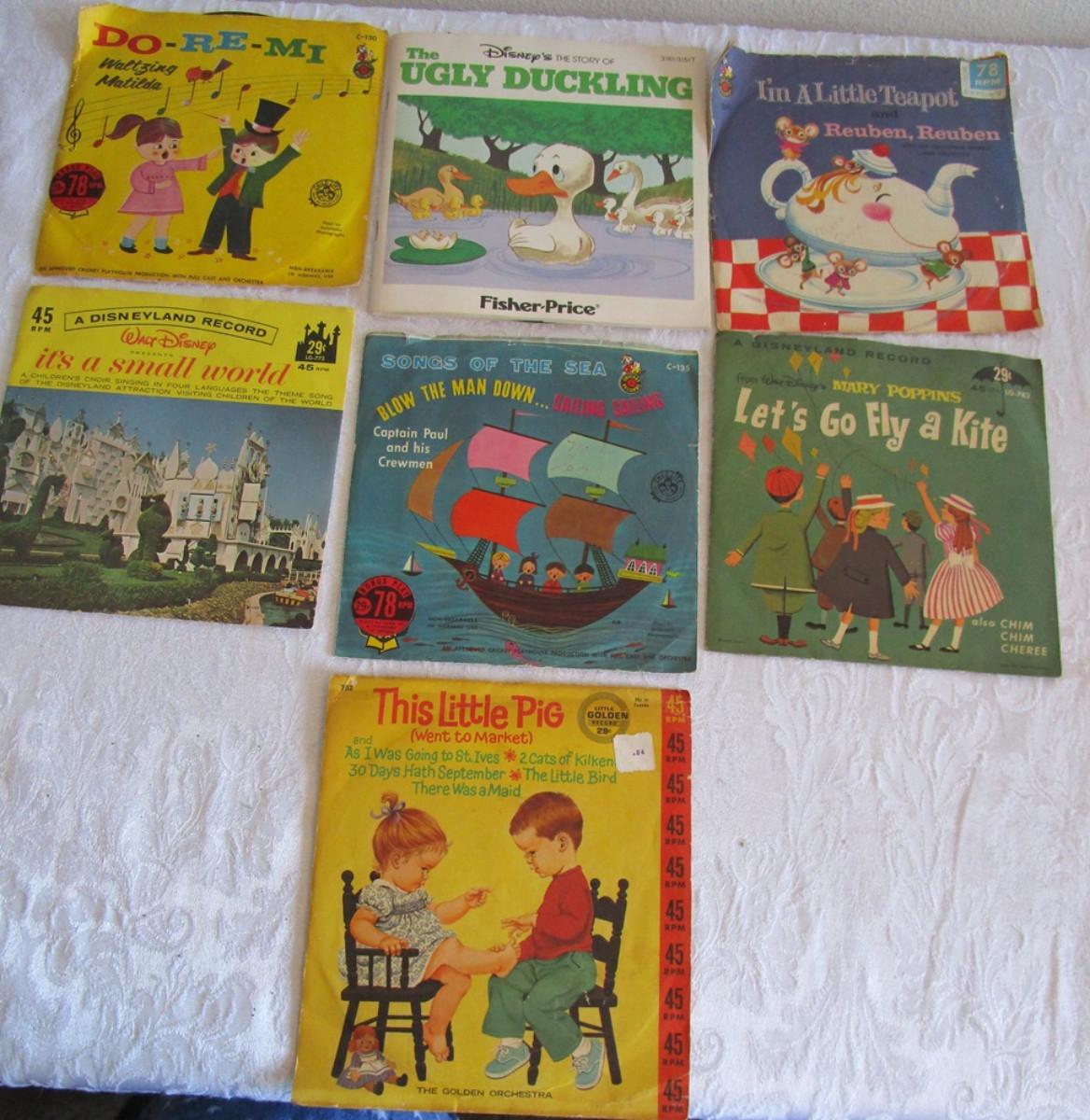 45s & 78s, see pictures, 1 with read-along book