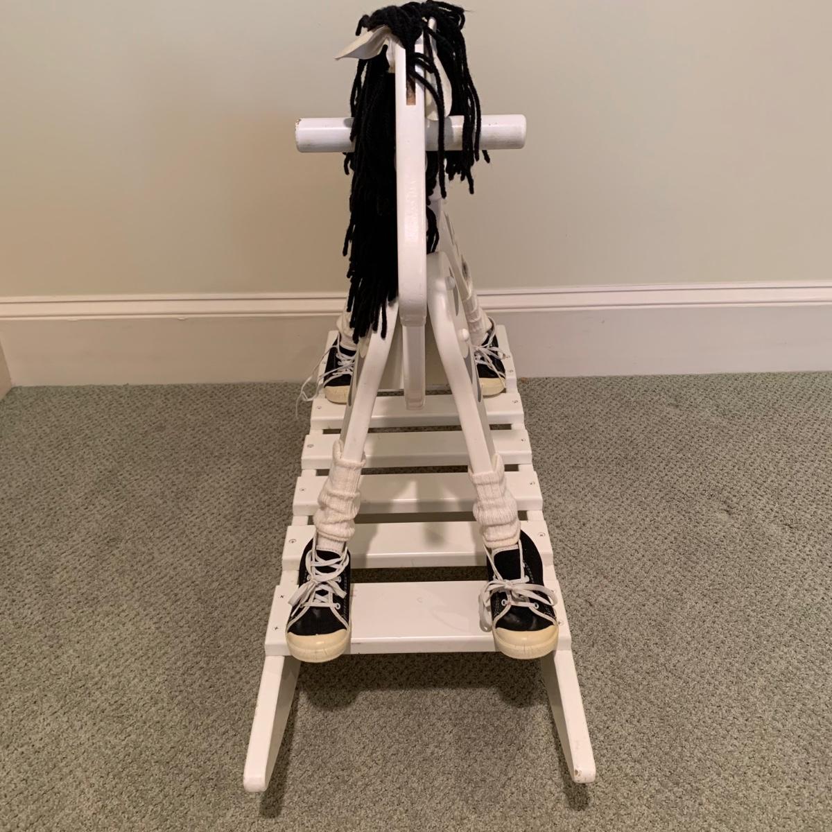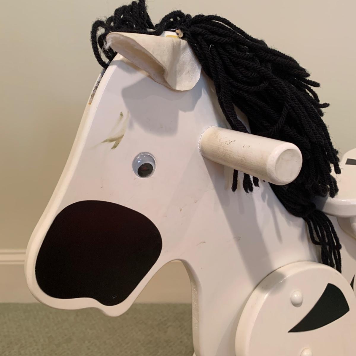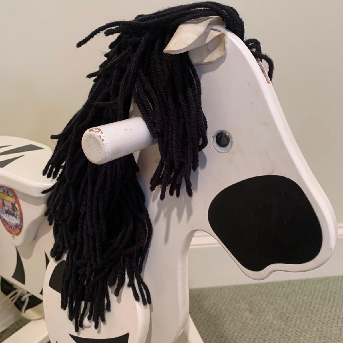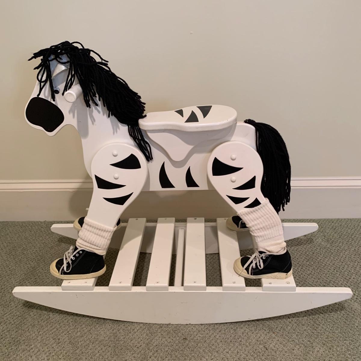 Adorable Zebra style rocker. Rocker is made of wood and measures, 34” x 12” x 27”H. There is some paint chipping around the handles. Item has some surface smudges. Will need to be cleaned up but some smudges appear into the paint. Please see photos for more details. Local pick-up only.