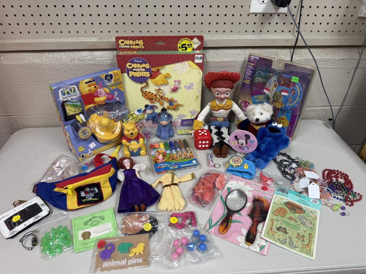 Pooh, Barney, Jessie, jewelry, Minnie night light, miscellaneous