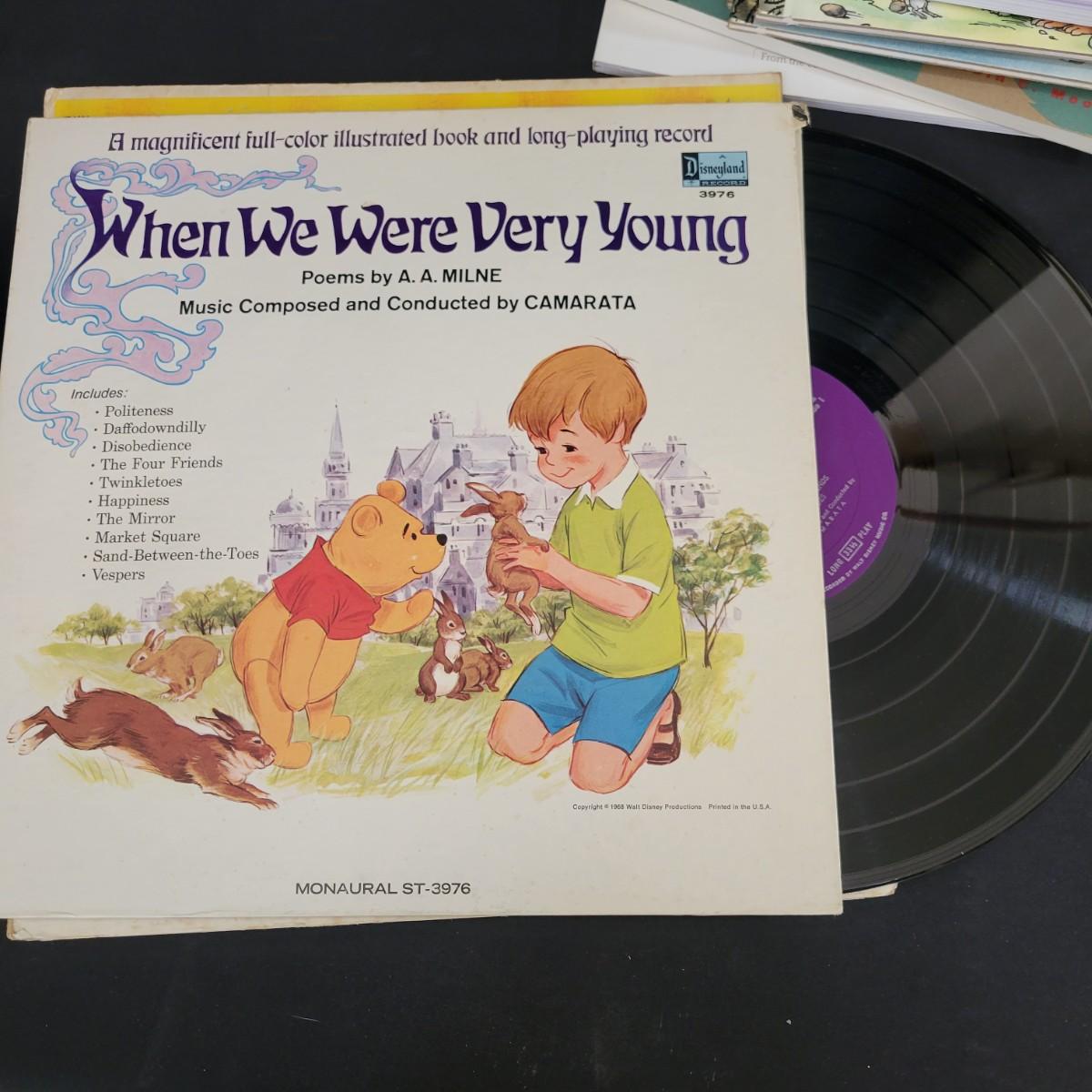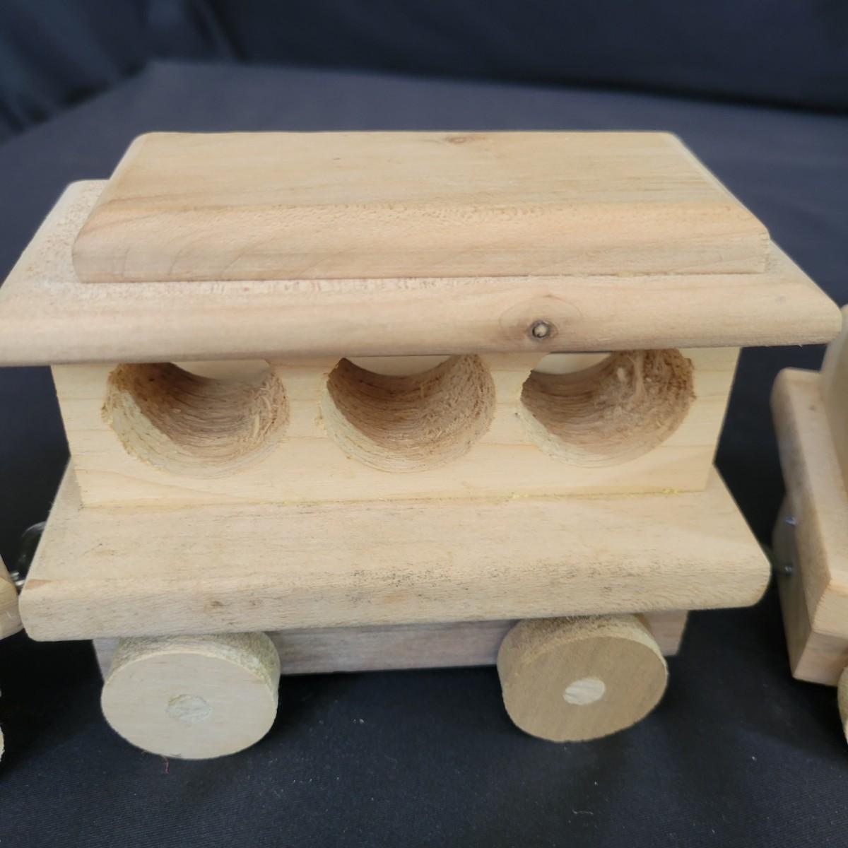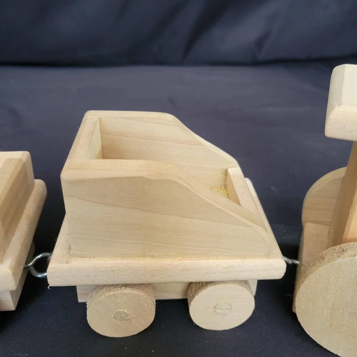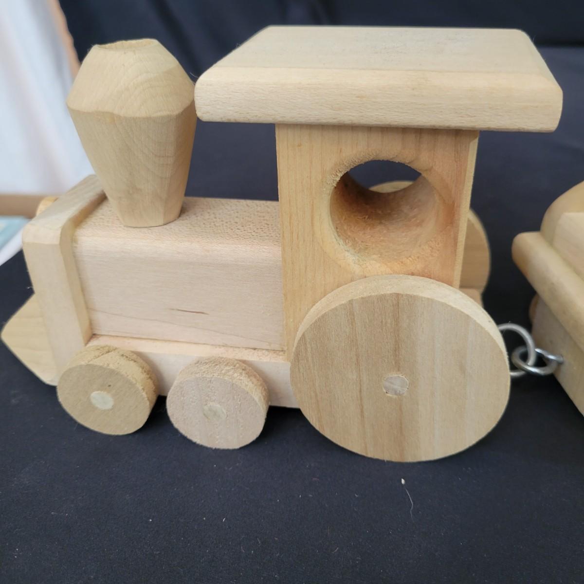 An assortment of children's toys, books, games and more in good condition. Included is a five piece raw wood train, multiple books and games, a 50 piece puzzle, three albums, and a Walt Disney Productions Winnie the Pooh mug. The trains engine measures approximately 7.5" x 3" x 4.5". Shipping available. Shipping can be costly. We suggest calling our local UPS with dimensions and getting an estimate