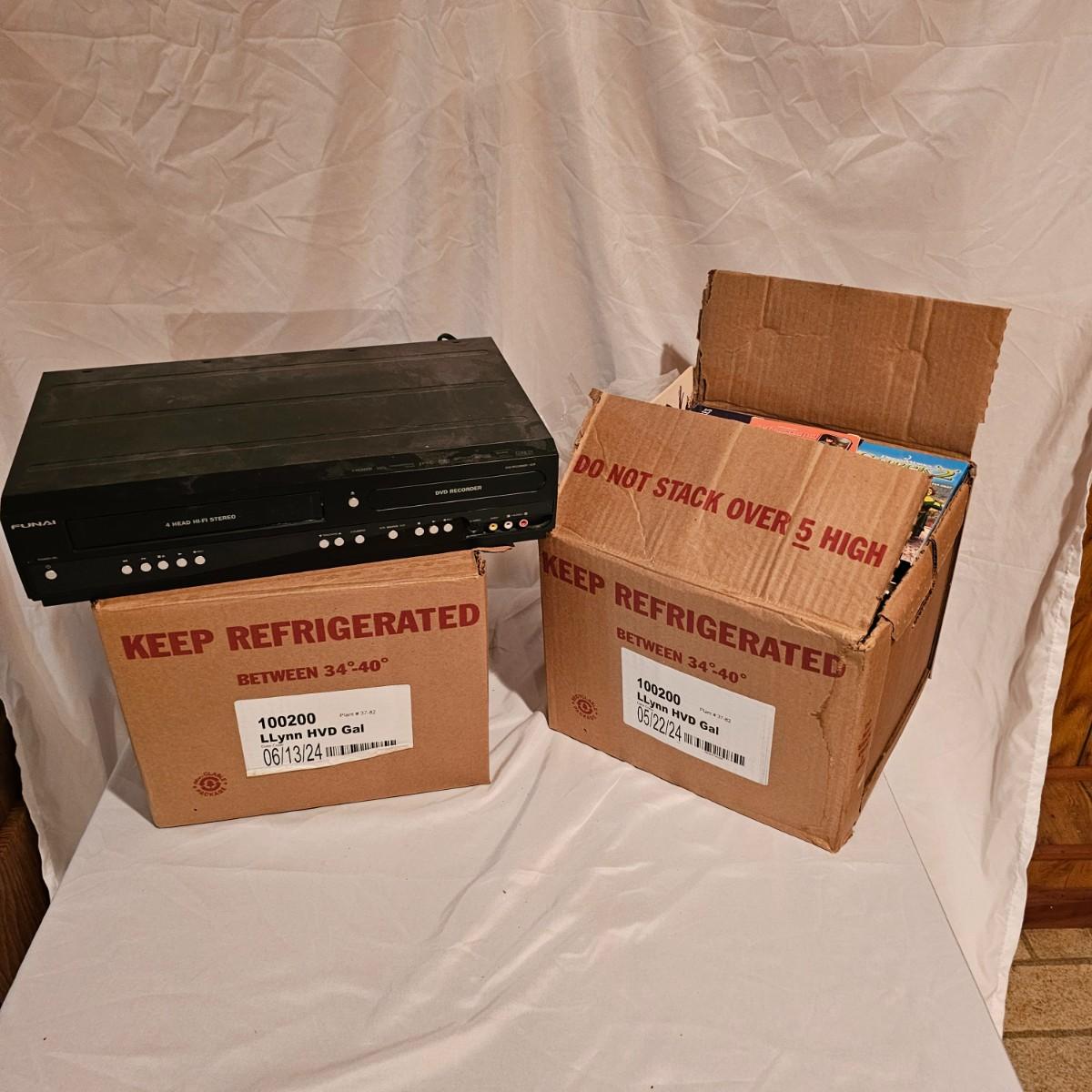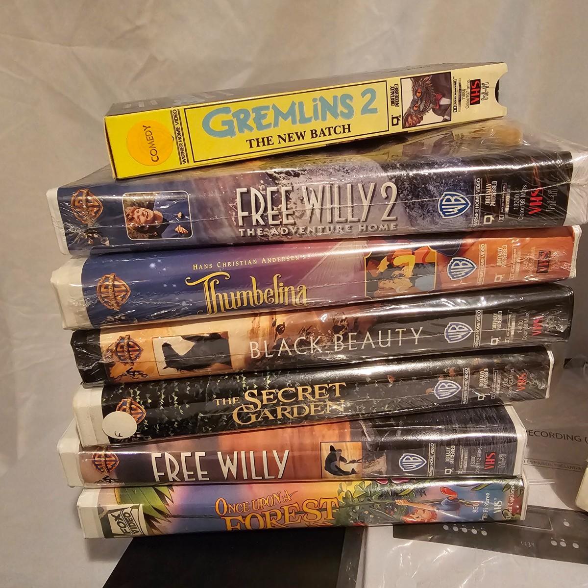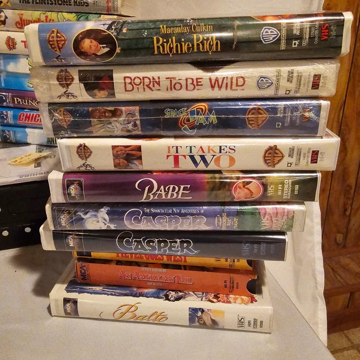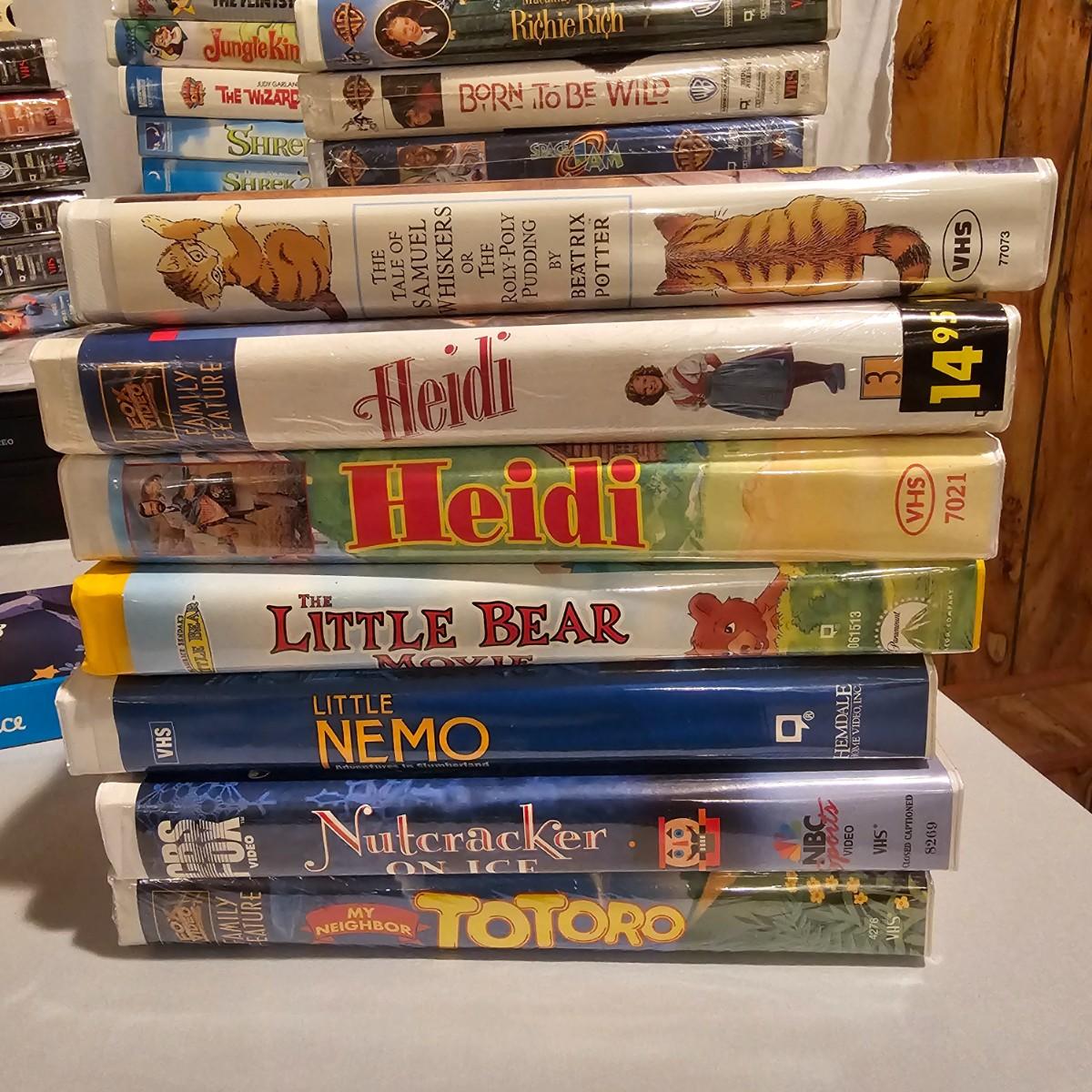 Lots of fun kids' classic movies on VHS tape, some books and a VHS/DVD recorder. Shrek, Richie Rich, Thumbelina and more. Over 35 titles here. Also includes a Funai DVD/VHS brand player/recorder. Unit powered on when plugged in. See photos for details. Local pickup only.