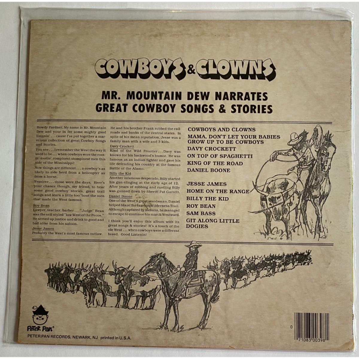 Mr. Mountain Dew - Cowboys And Clowns - Peter Pan Records – 1119. The sleeve has some discoloration in the back.