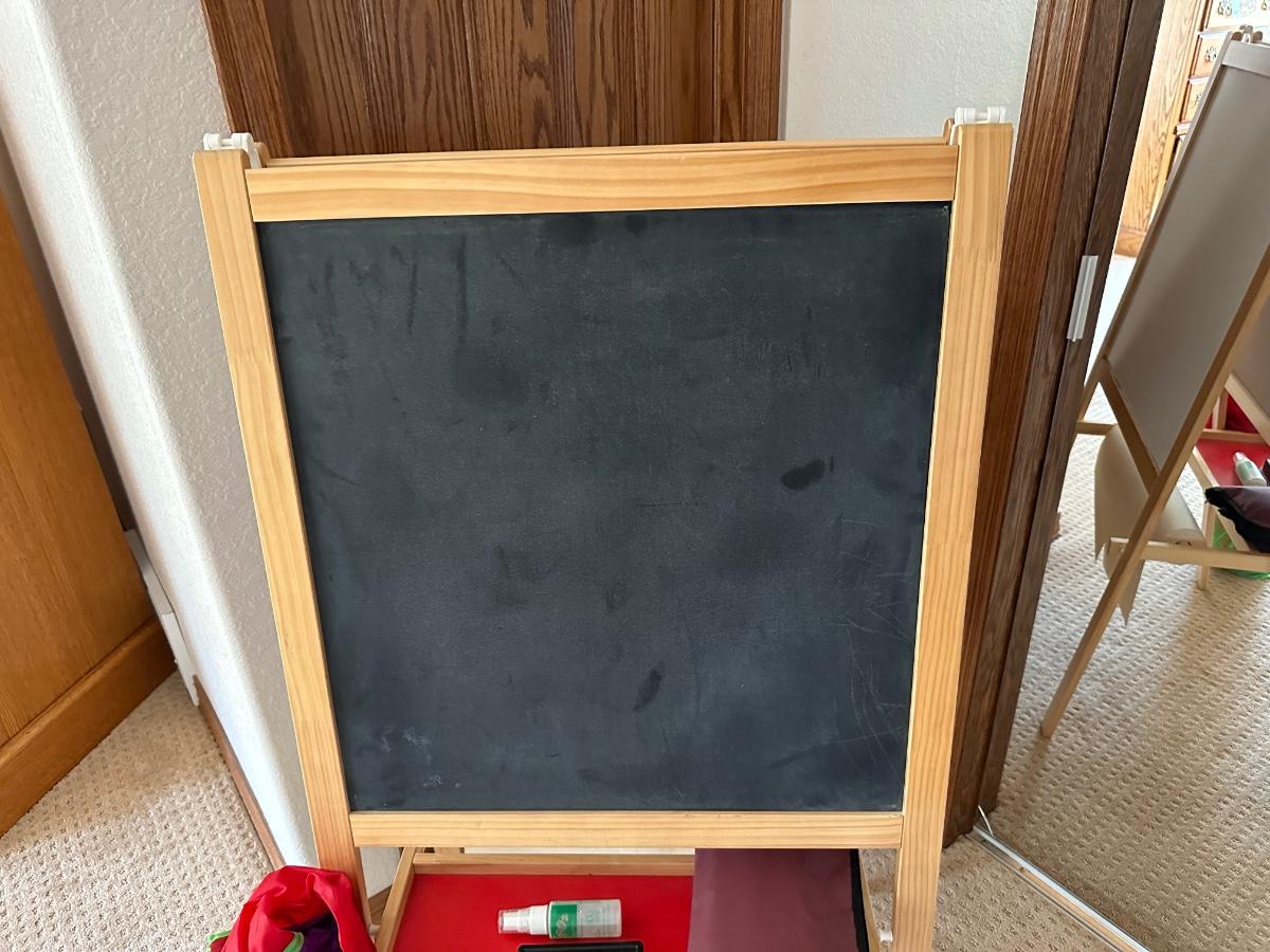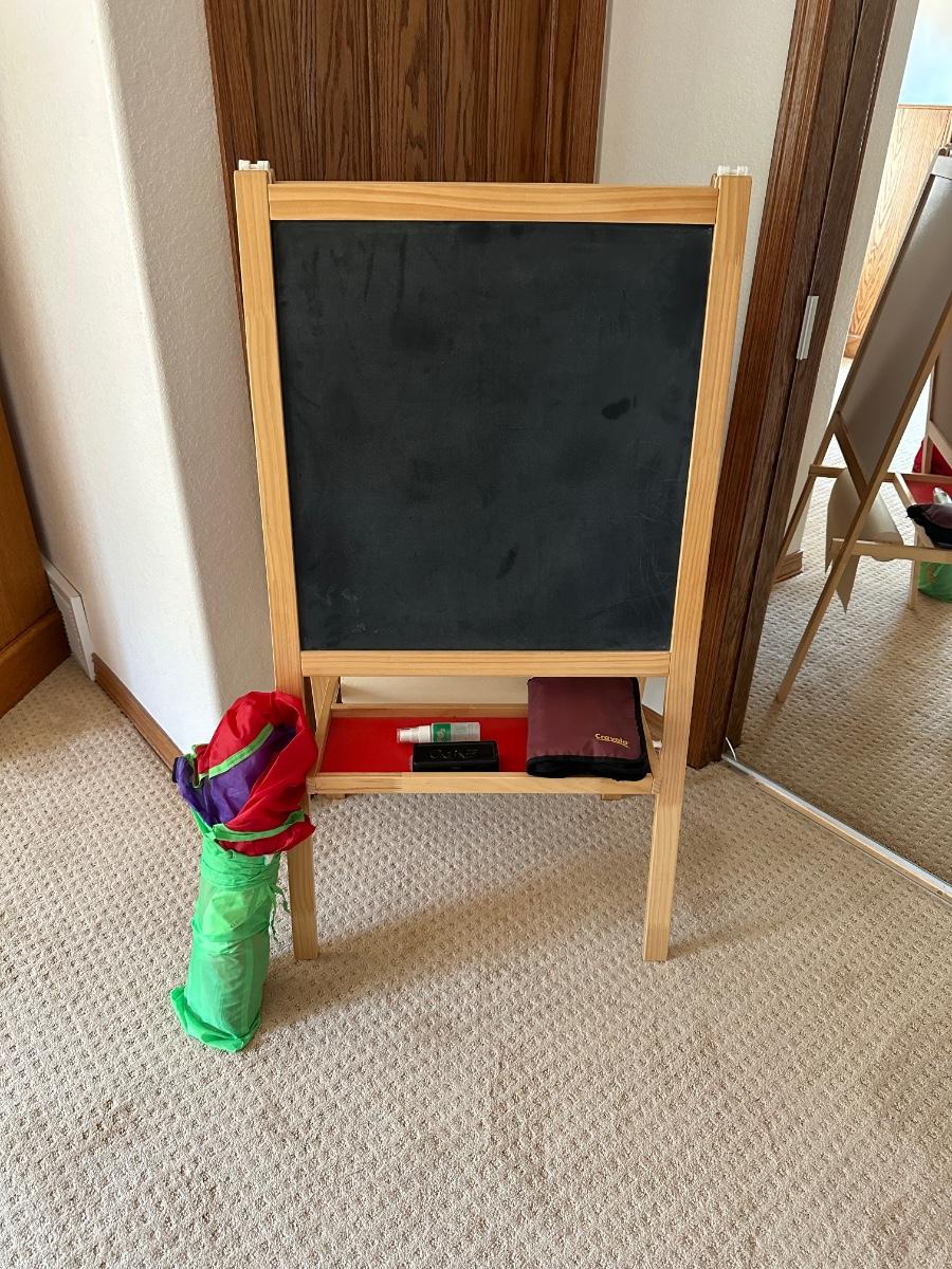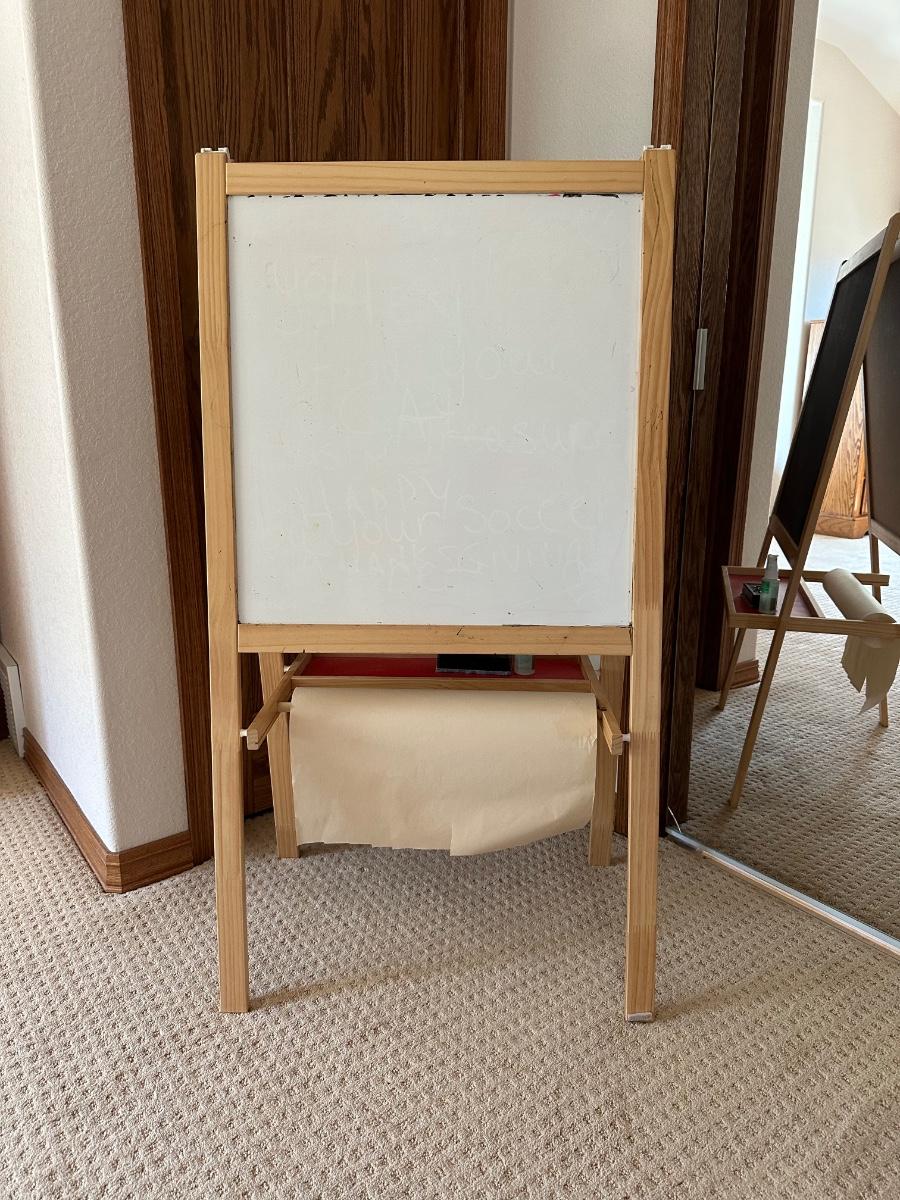 CHILD'S ACTIVITY EASEL WITH CHALKBOARD & DRY ERASE