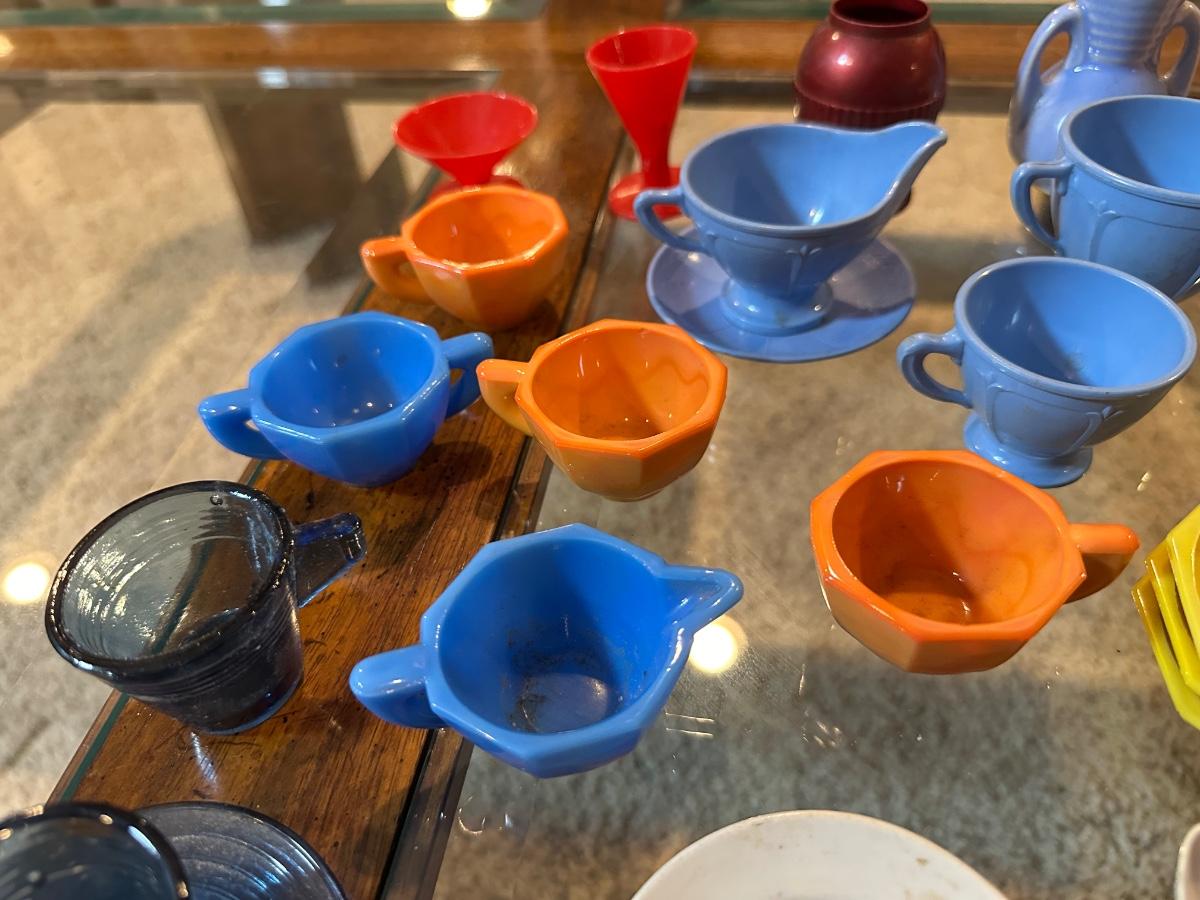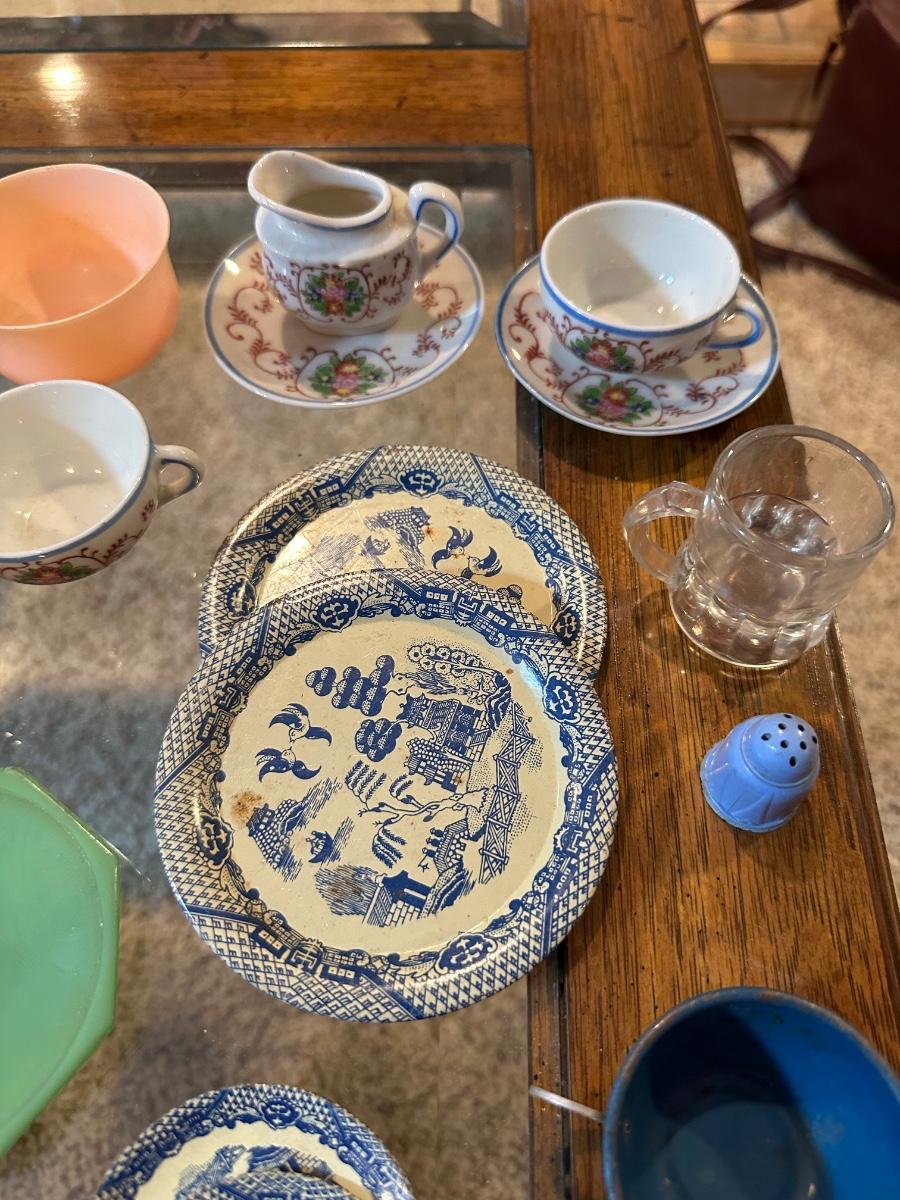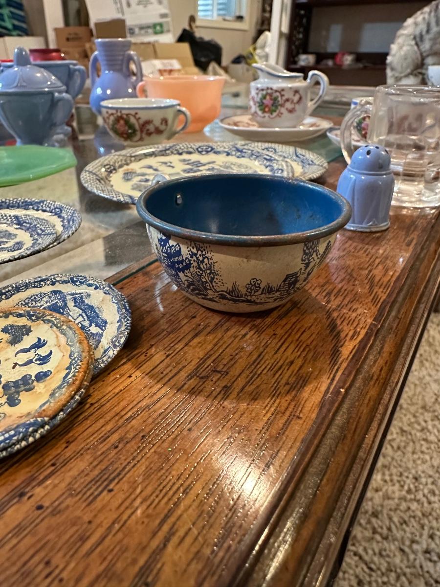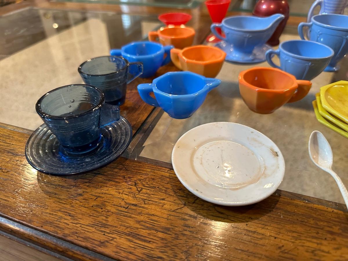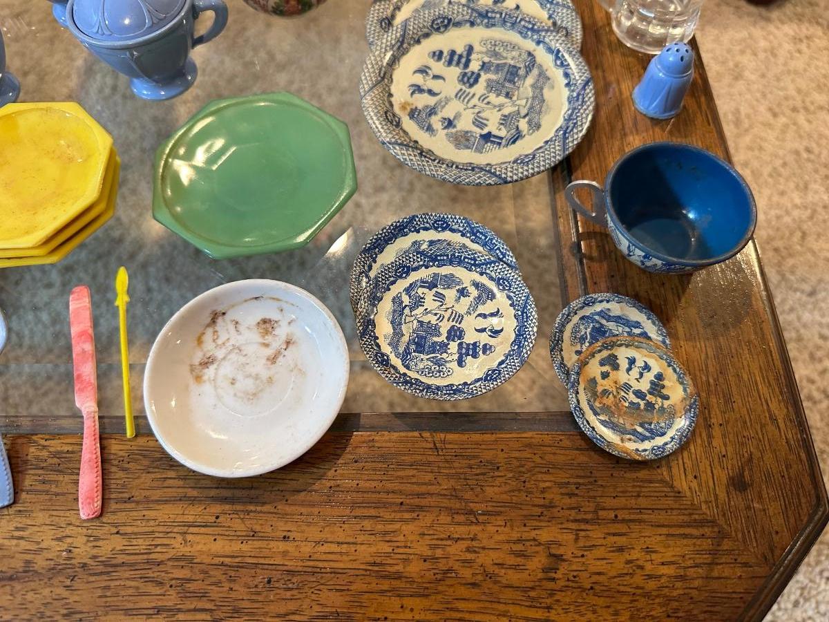 CHILD'S AKRO AGATE, TIN AND OTHER PLAYSET DISHES