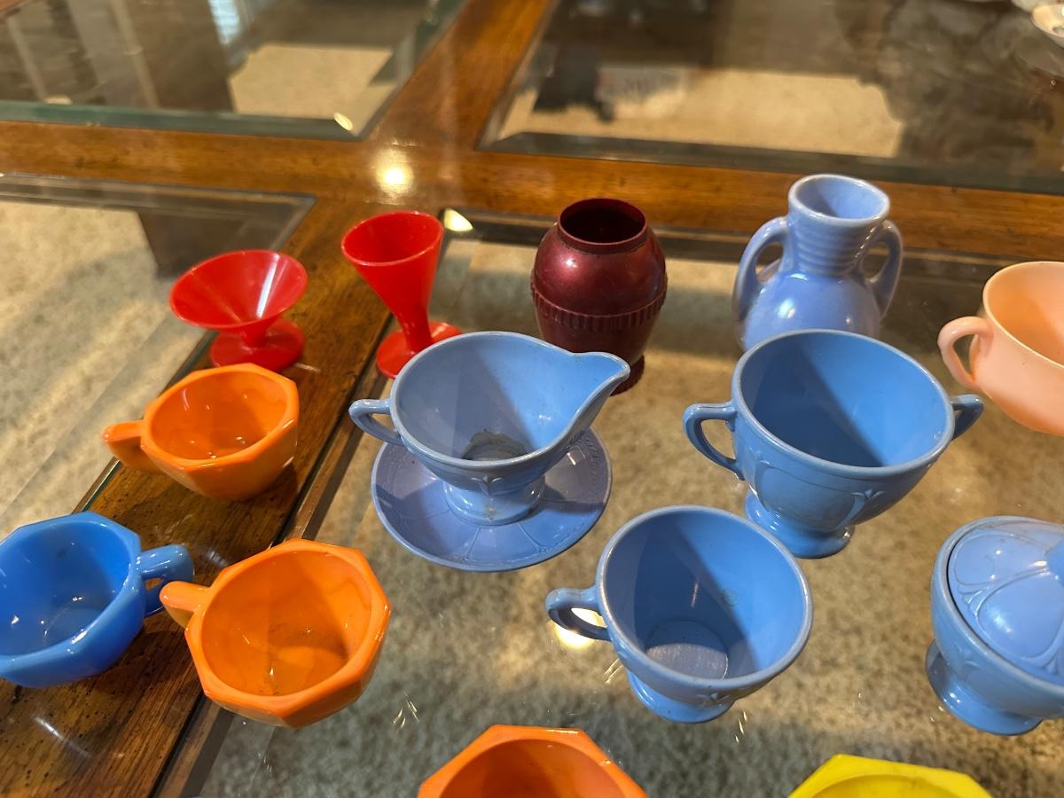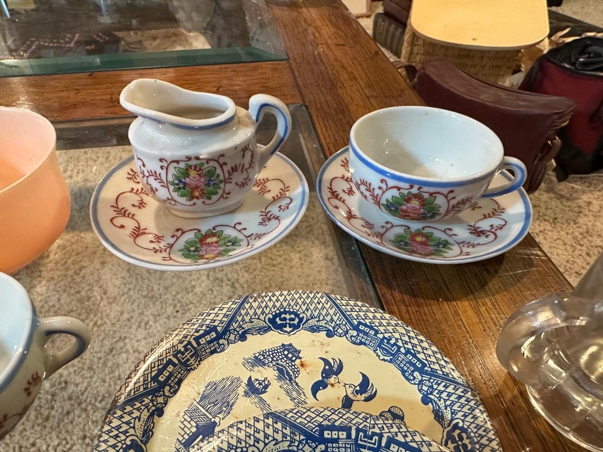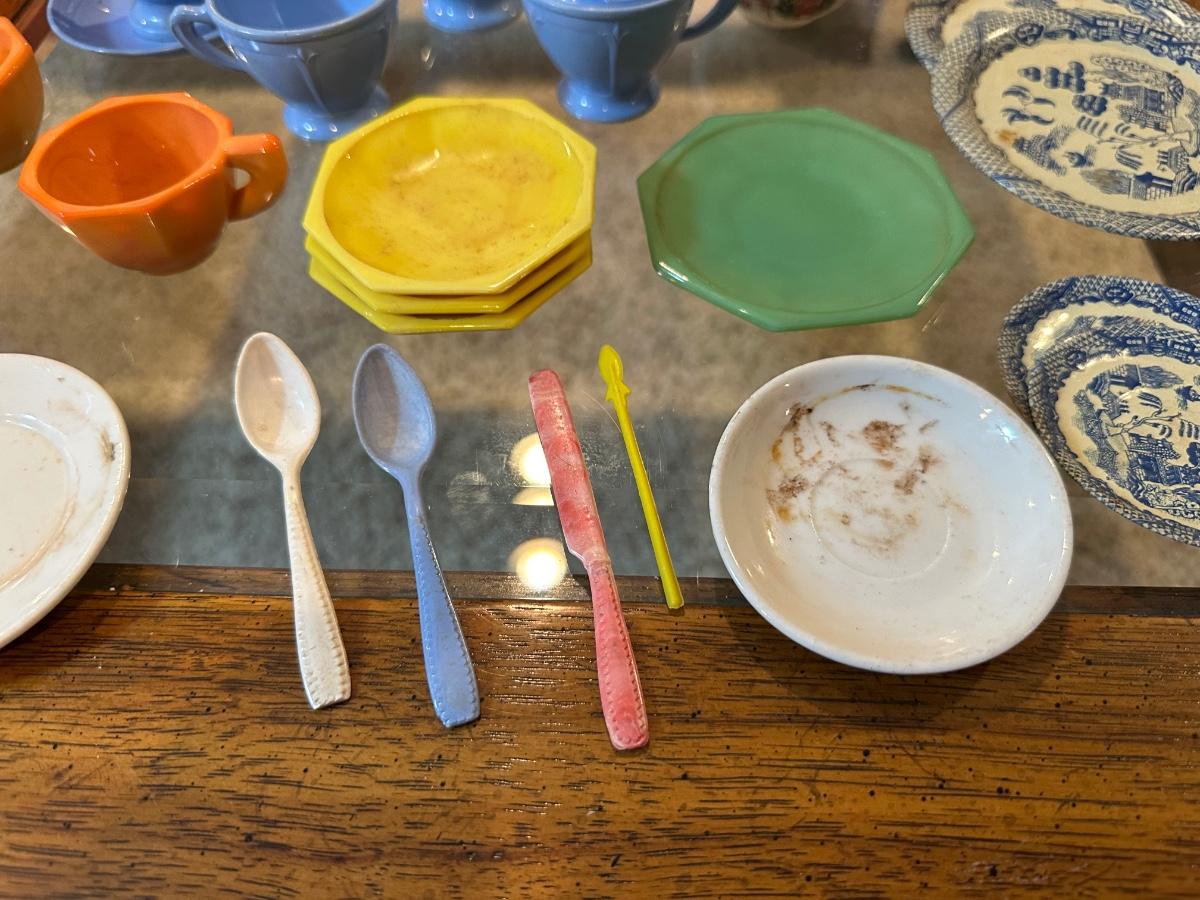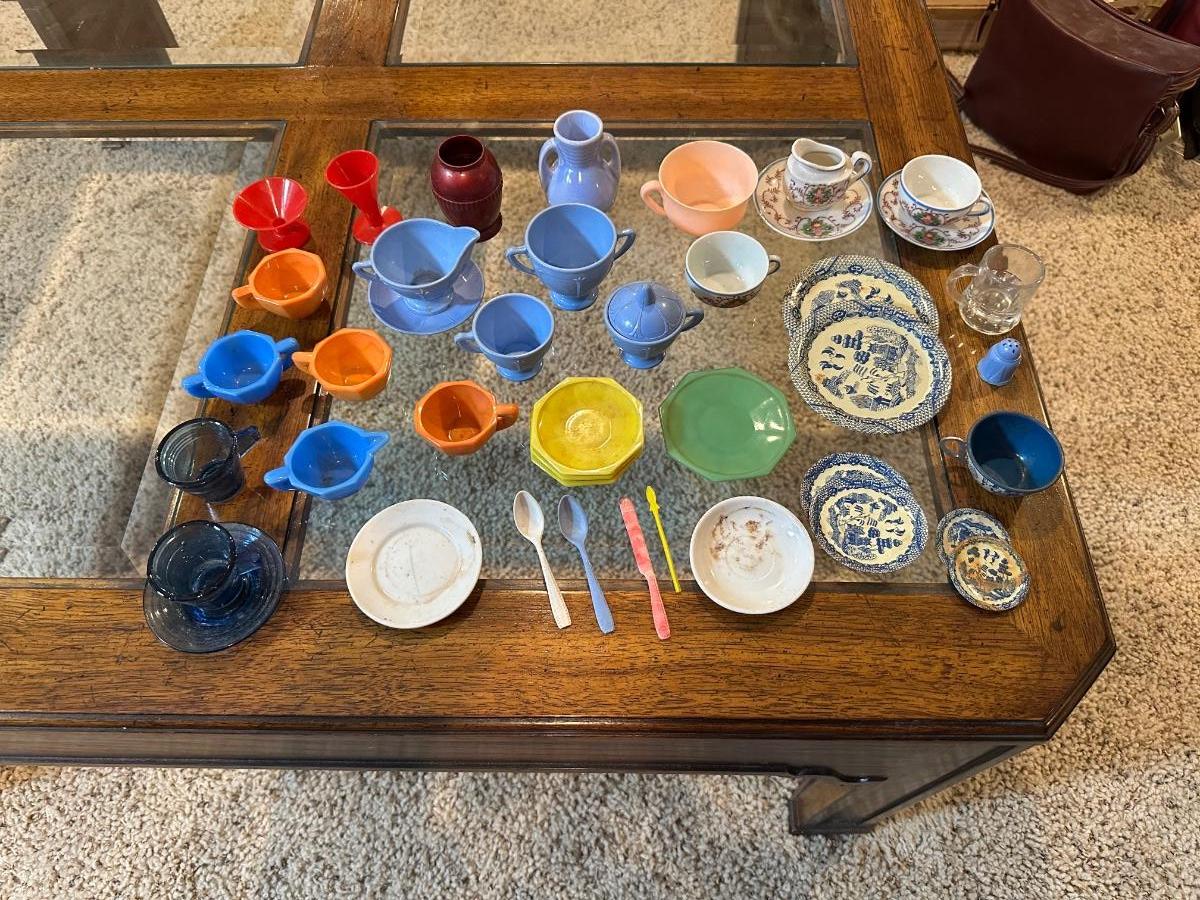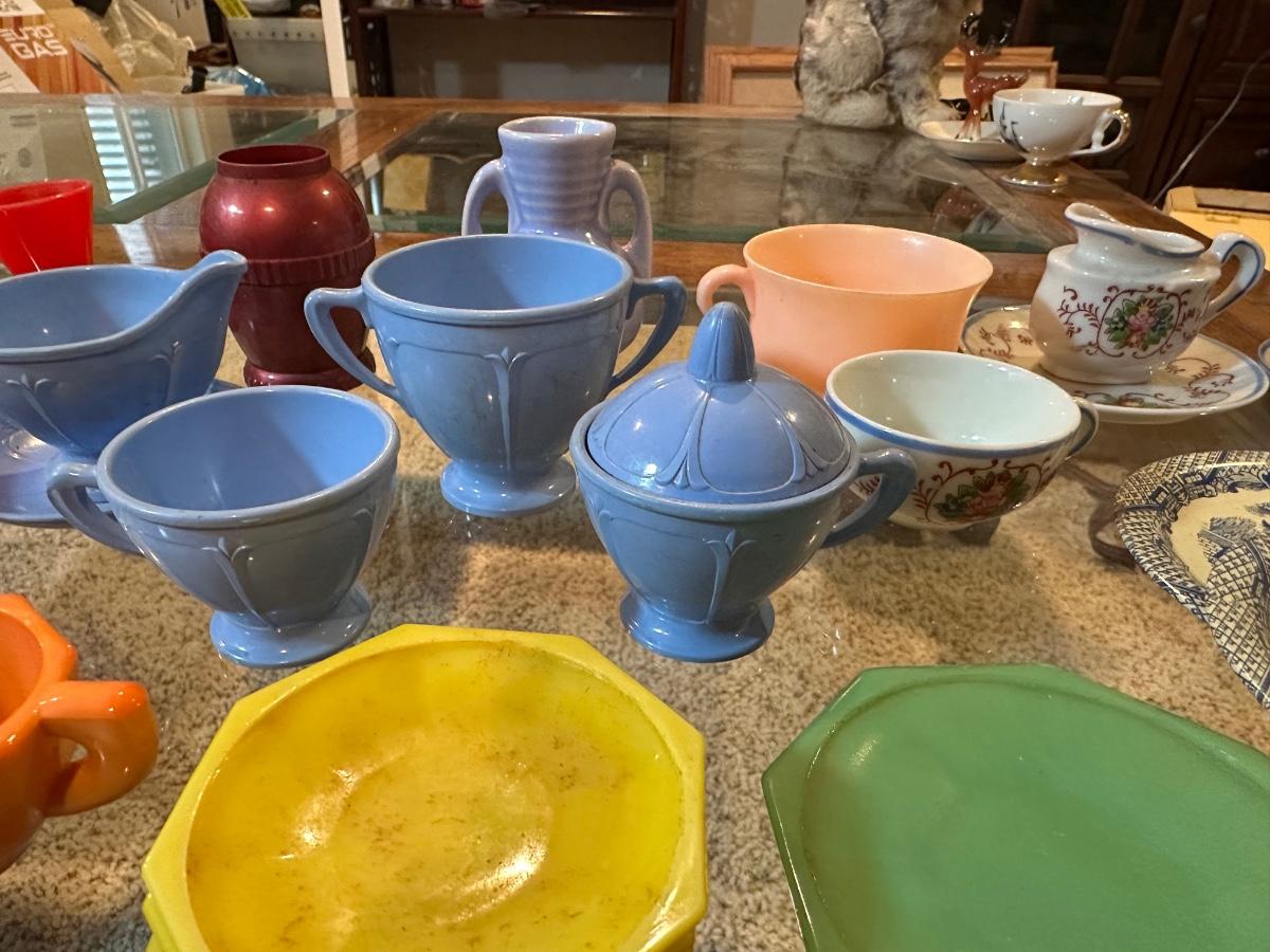 CHILD'S AKRO AGATE, TIN AND OTHER PLAYSET DISHES