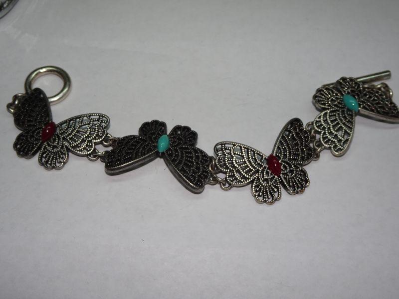 Child's Butterfly Bracelet, Silver Gray Tone, Filigree Butterflies