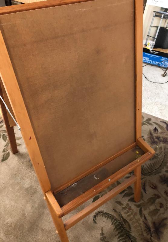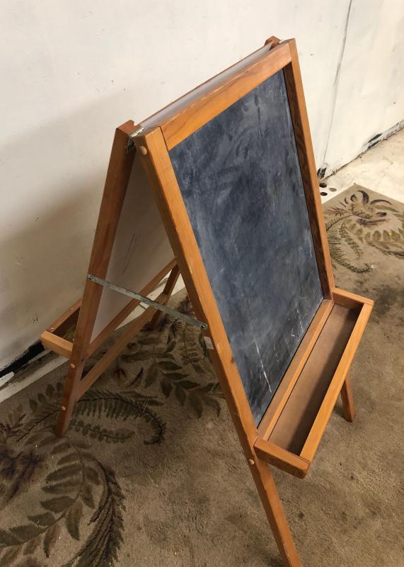 Here is a children's chalk blackboard which works as an easel too...folding..18 x 22"....