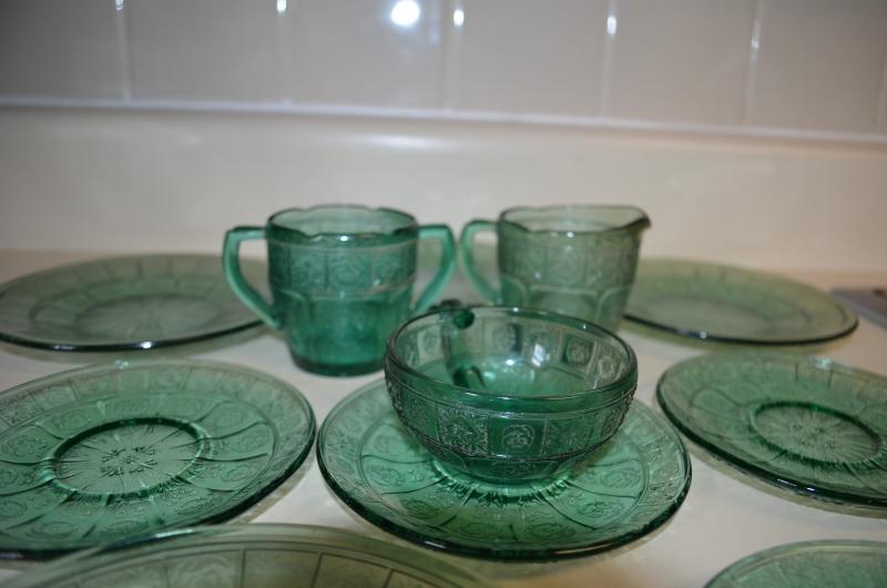 CHILD'S DEPRESSION GLASS TEA SET INCOMPLETE