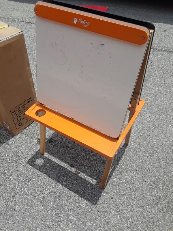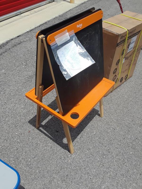 CHILD'S DRAWING CENTER CHALK BOARD ON ONE SIDE AND ERASER BOARD ON OTHER