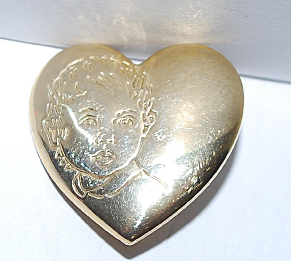 Child's Engraved Face HEART BROOCH (1" x 1") Marked "© THE VARIETY CLUB" on a Gold Tone Setting