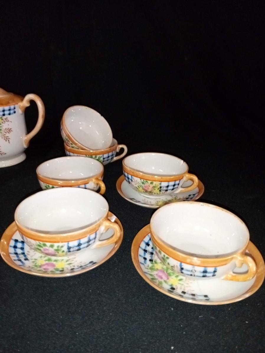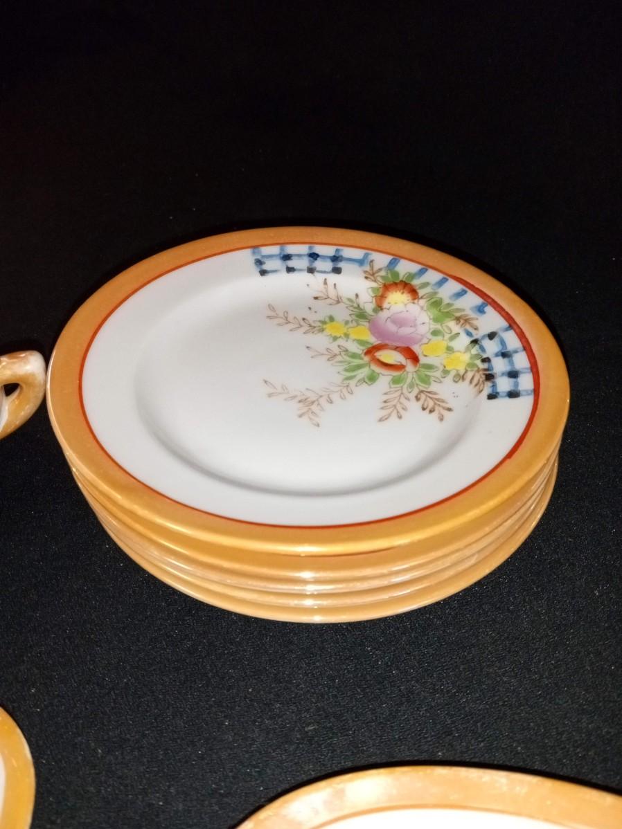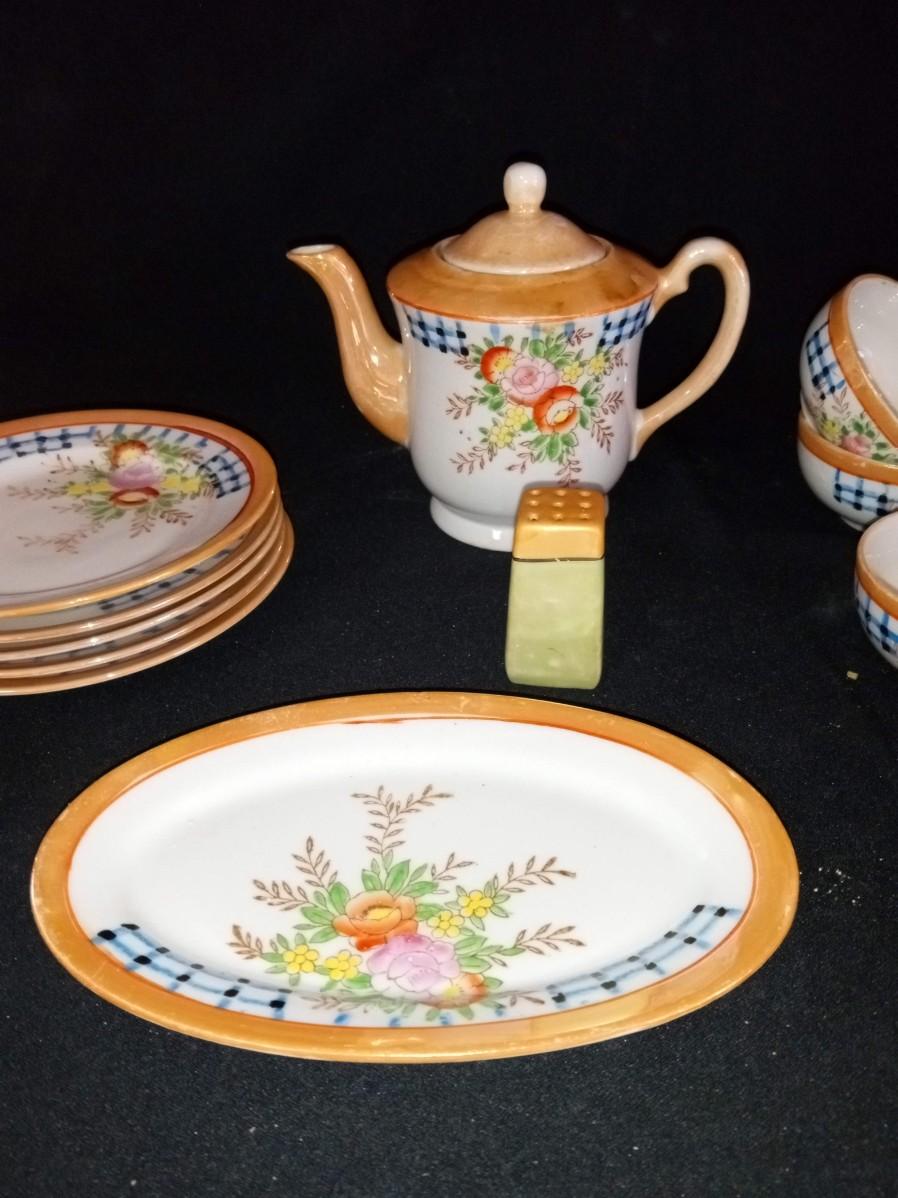SET IS NOT COMPLETE AND THERE ARE A FEW CHIPS, INCLUDES SOME TIN FLATWARE