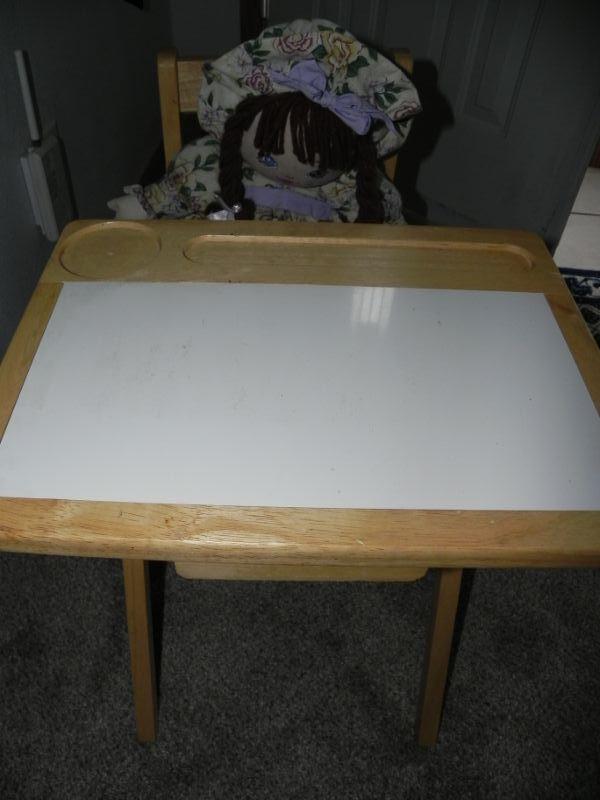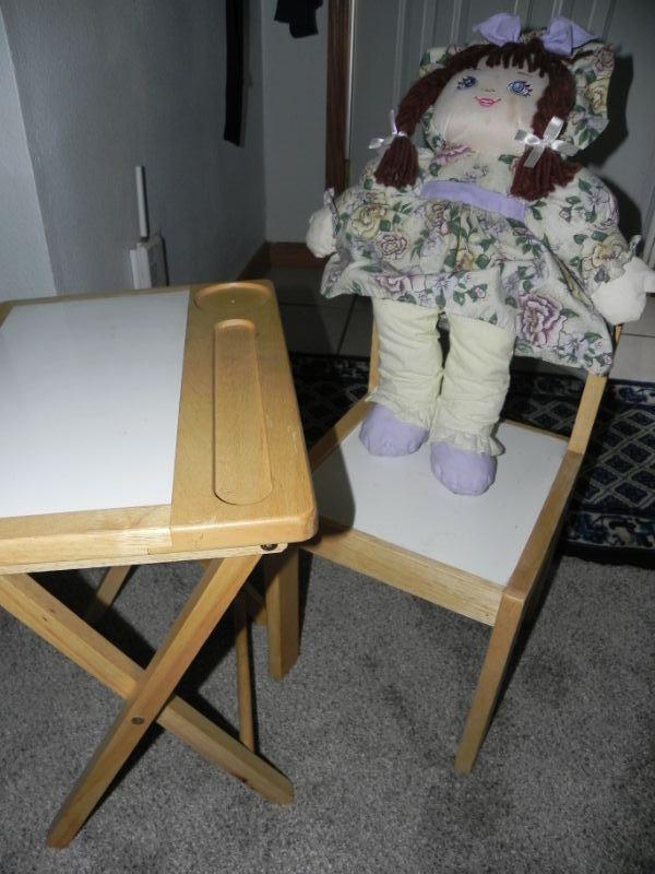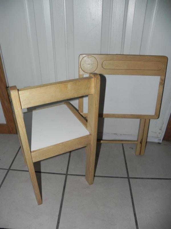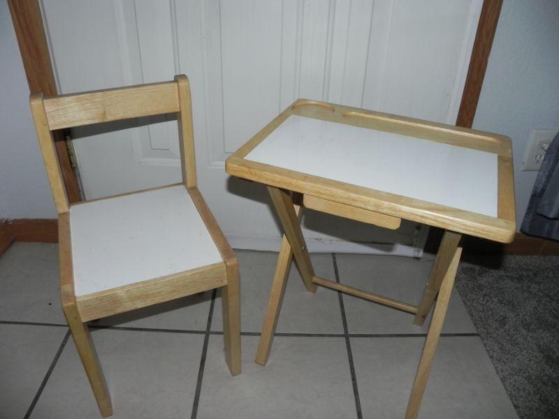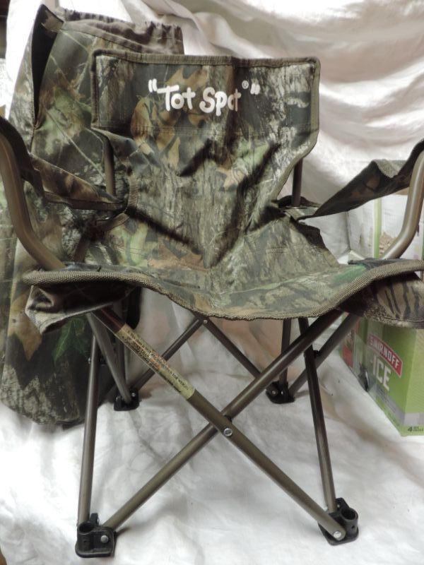 *CUTE SET CHAIR MEASURES 12"X13"X21" AND TRAY MEASURES 12"X16" WITH PLACE FOR DRINK AND A CAMAFLOGE CHILDS CAMPING CHAIR IN ITS OWN CARRY BAG