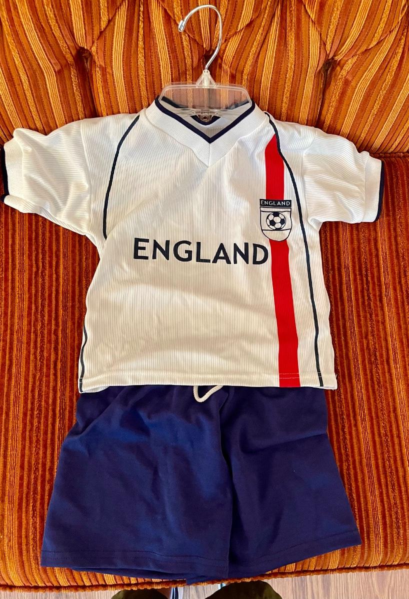 Unisex England soccer shirt and shorts