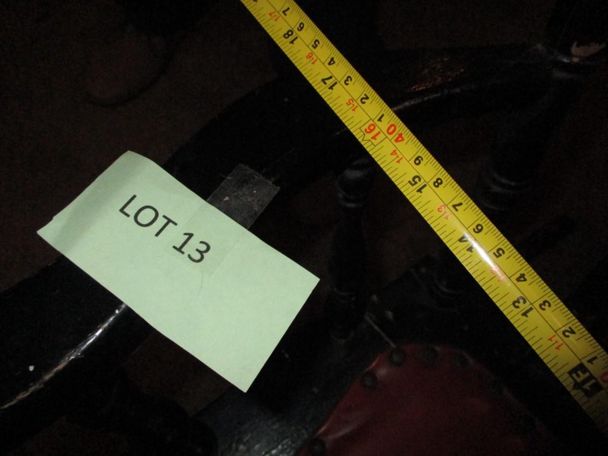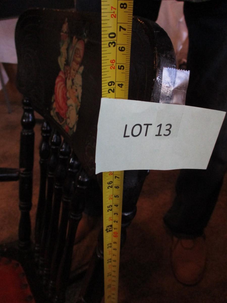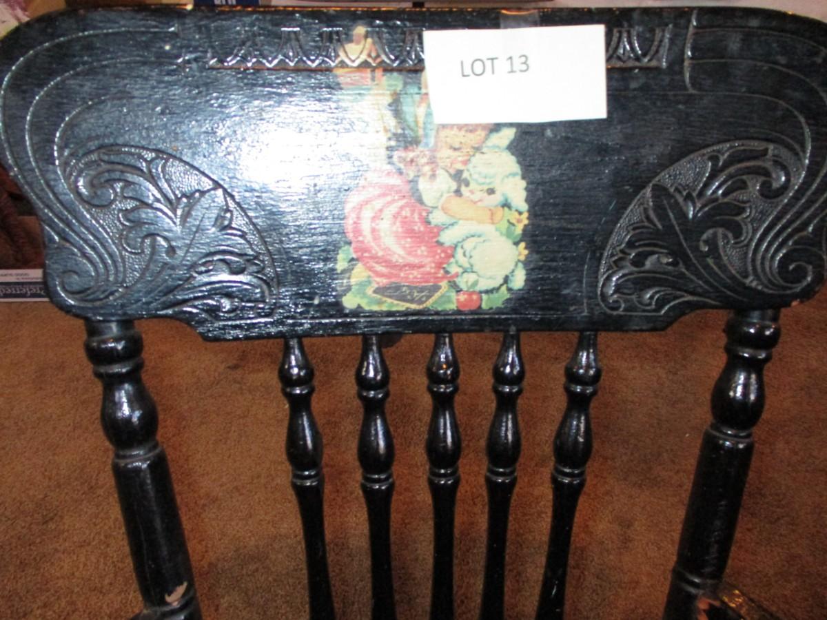 Black Child's Rocker. Normal wear. Leather seat cushion.