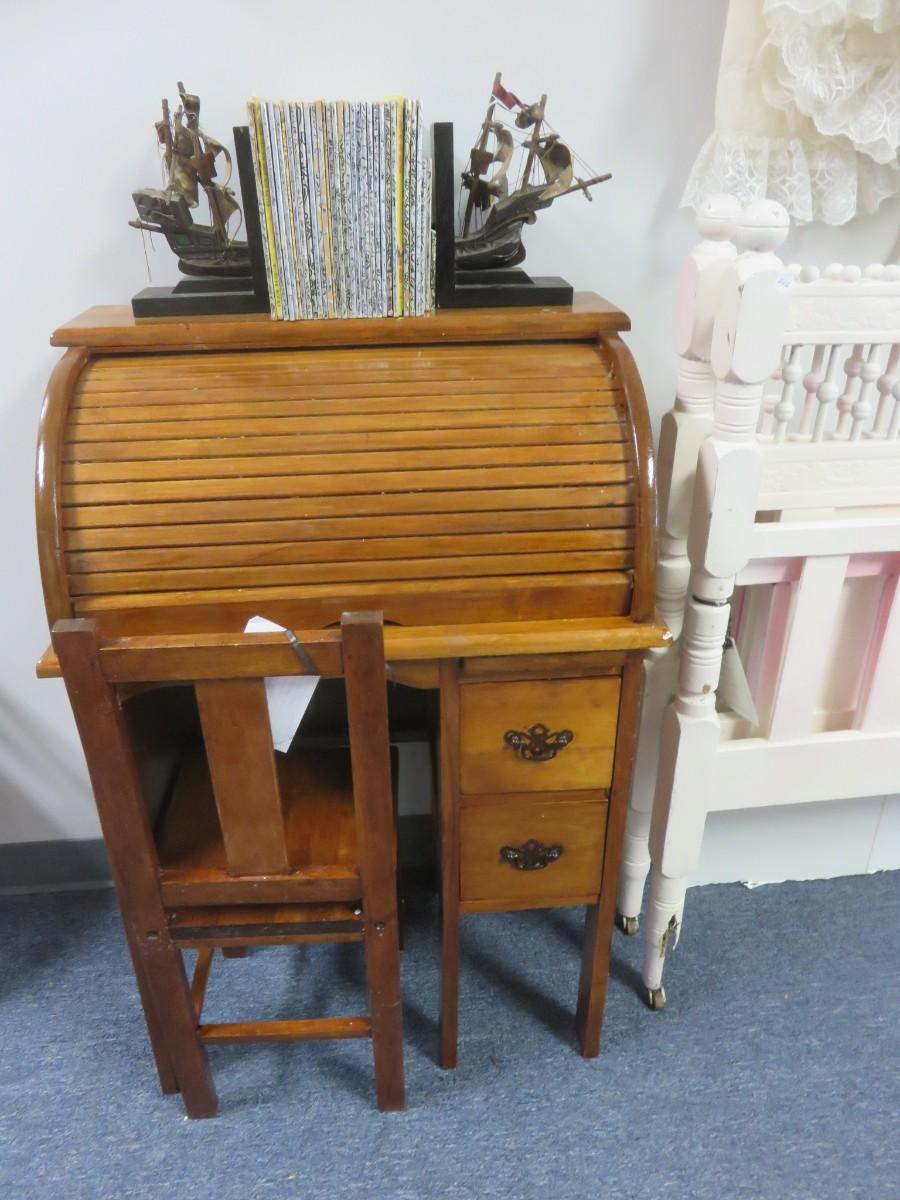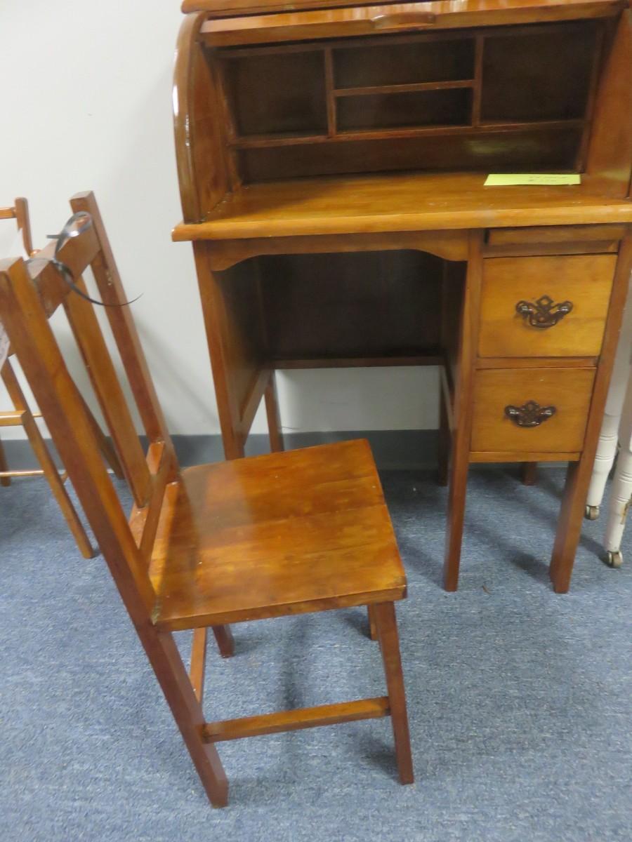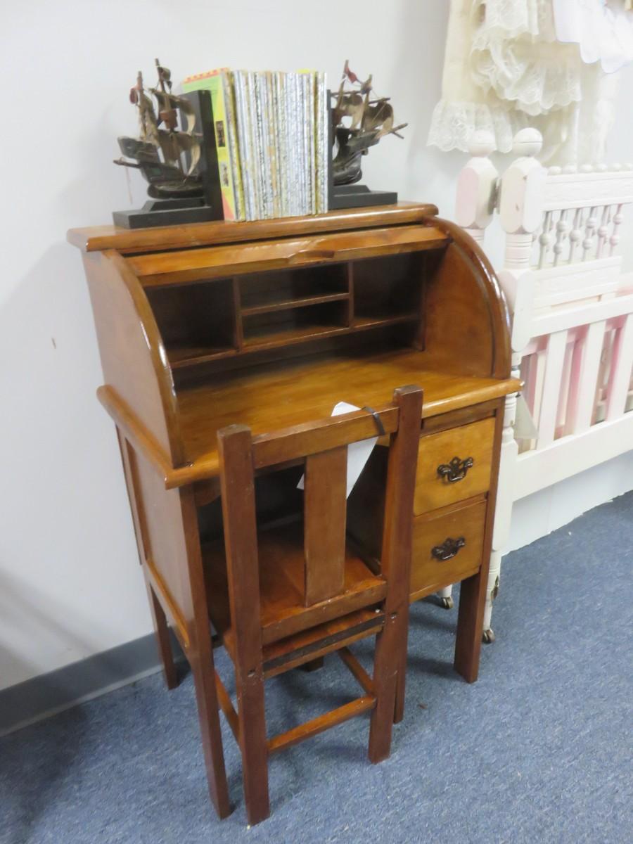 Child's Rolltop Desk and Chair - 24 x 15 inches and 36 1/2 tall