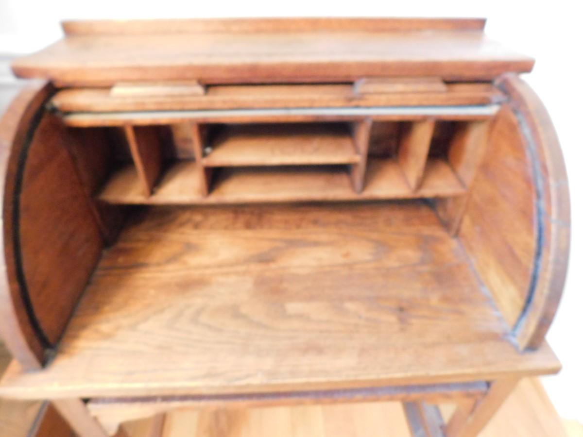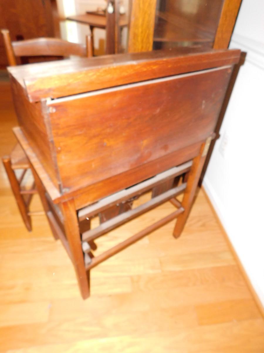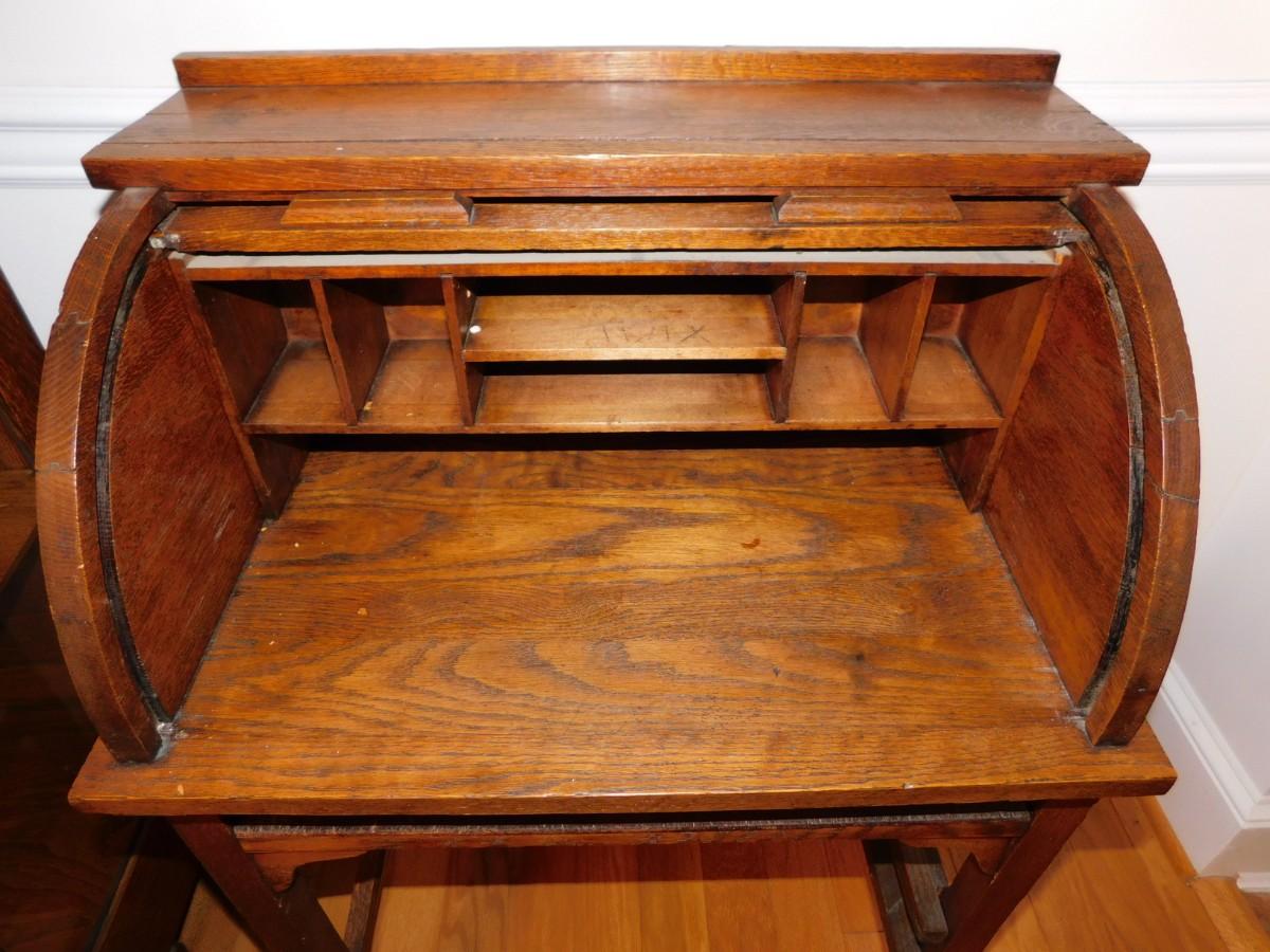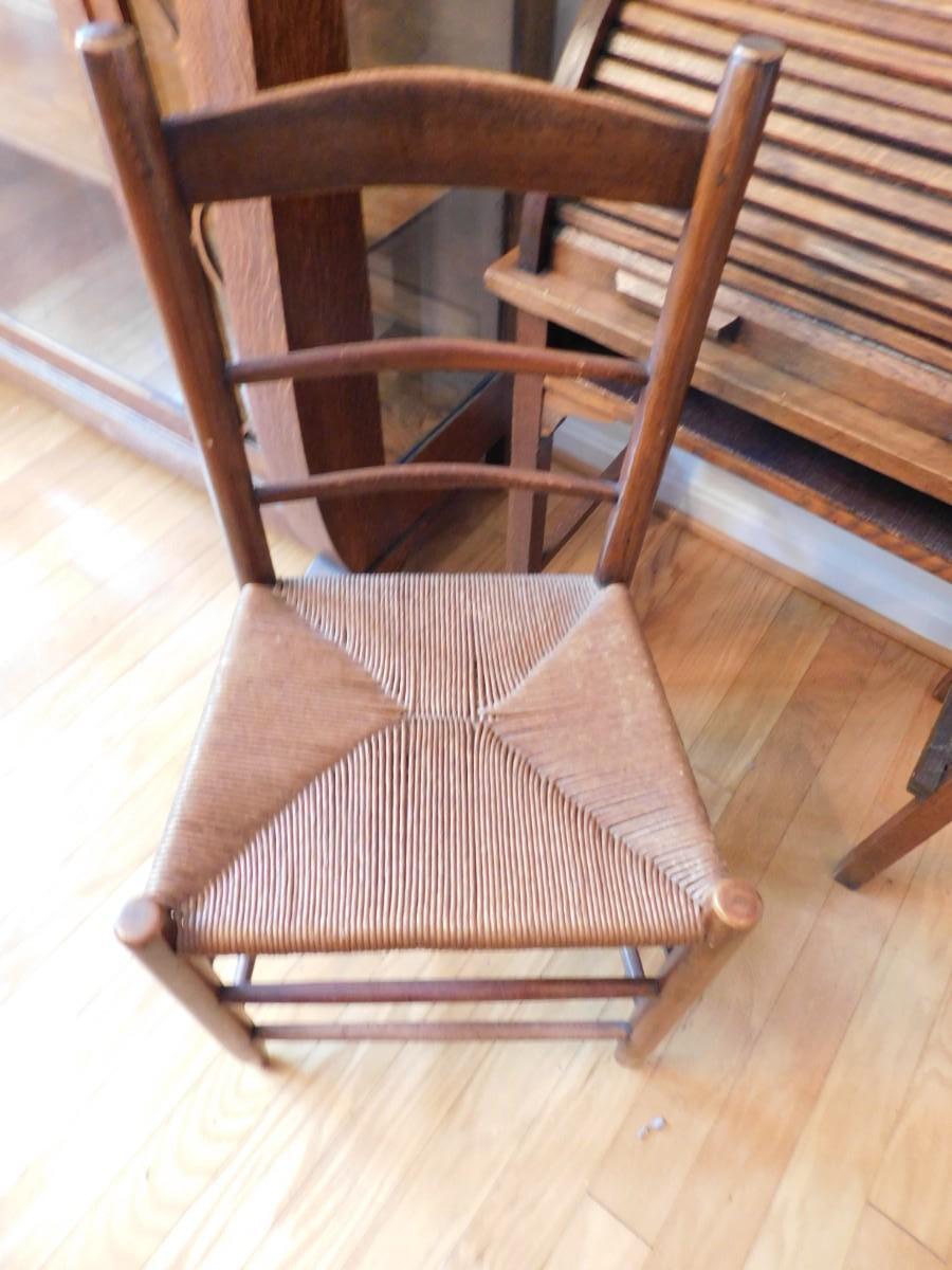 Childs Size Antique Oak Roll Top Desk w/ Ladder Back Rush Seat