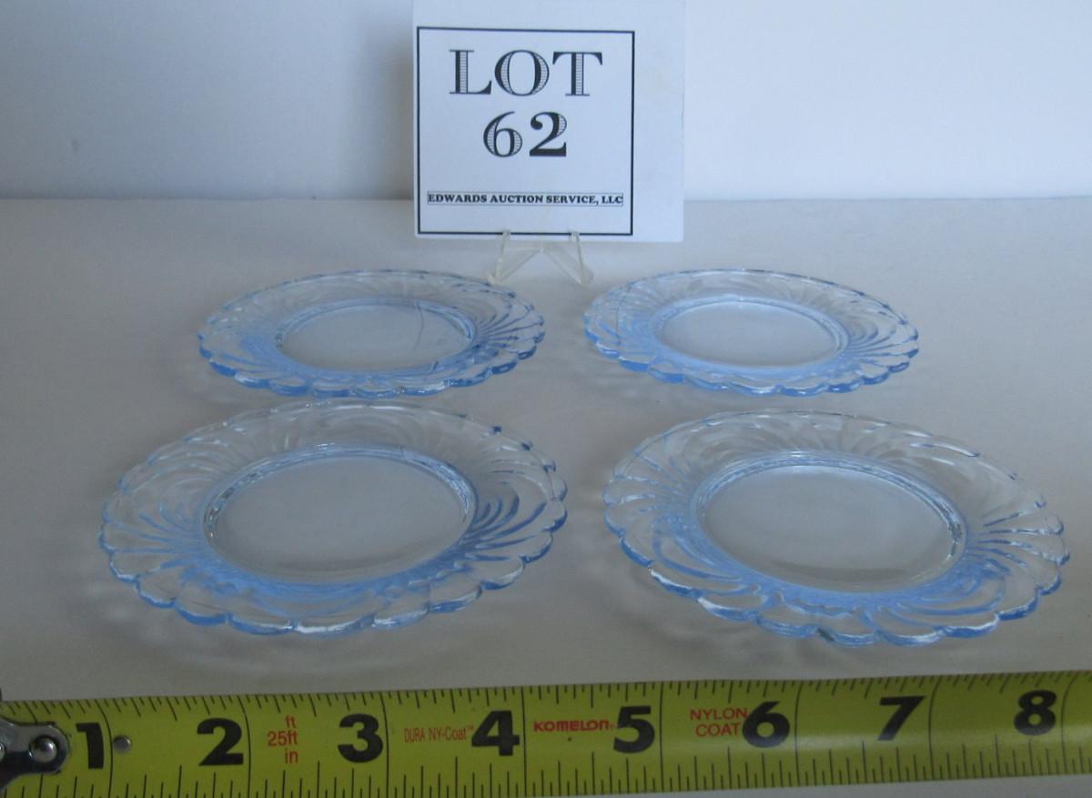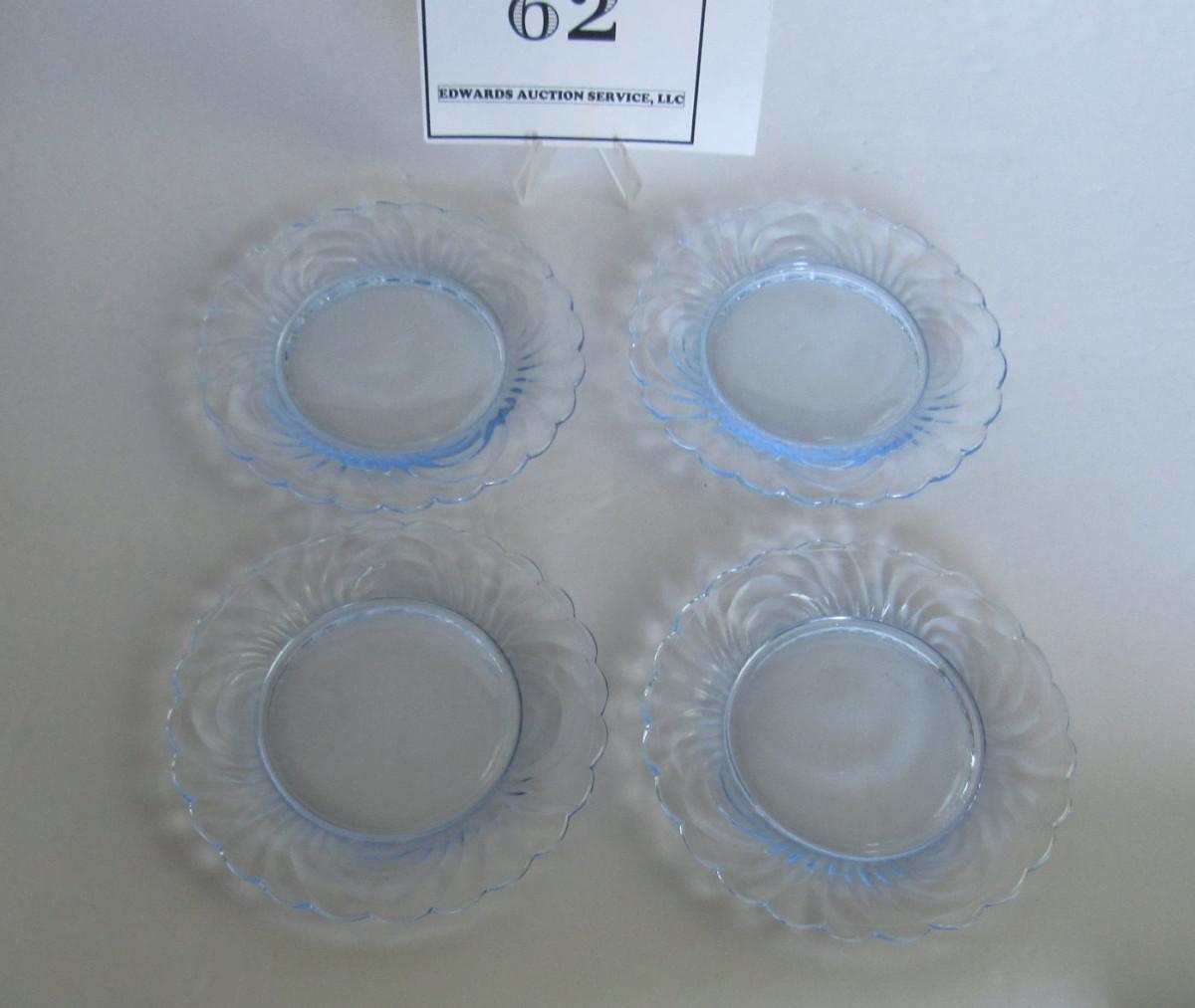 Child's Size Mosser Glass Lindsey Set of 4 Dinner Plates, Moonlight Blue