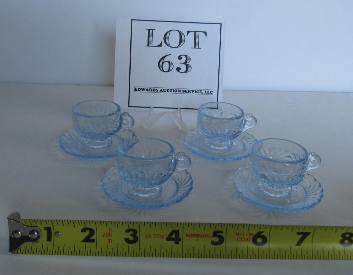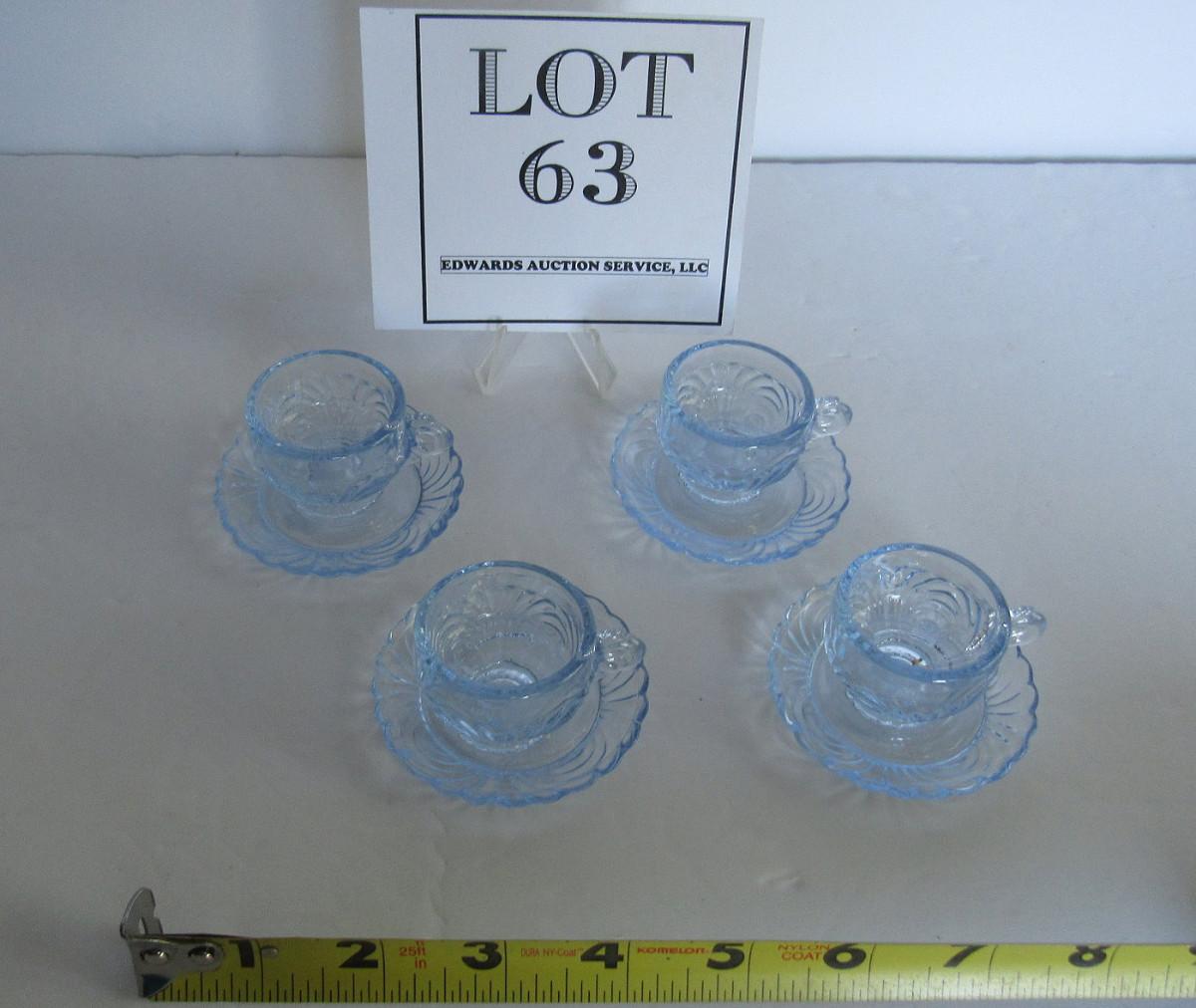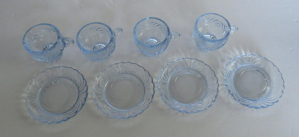 Child's Size Mosser Glass Lindsey Set of 4 Cup and Saucer Sets, Moonlight Blue