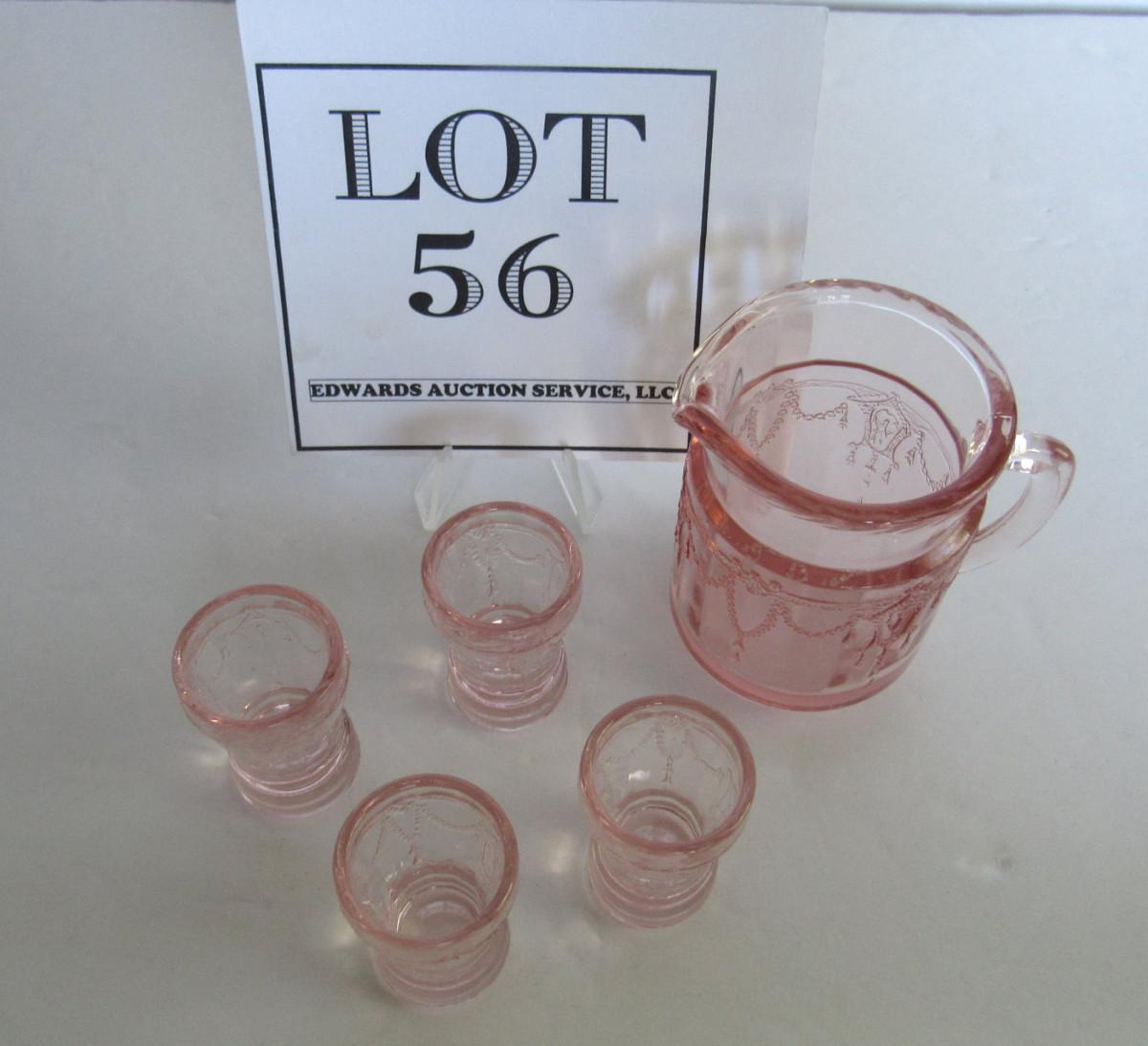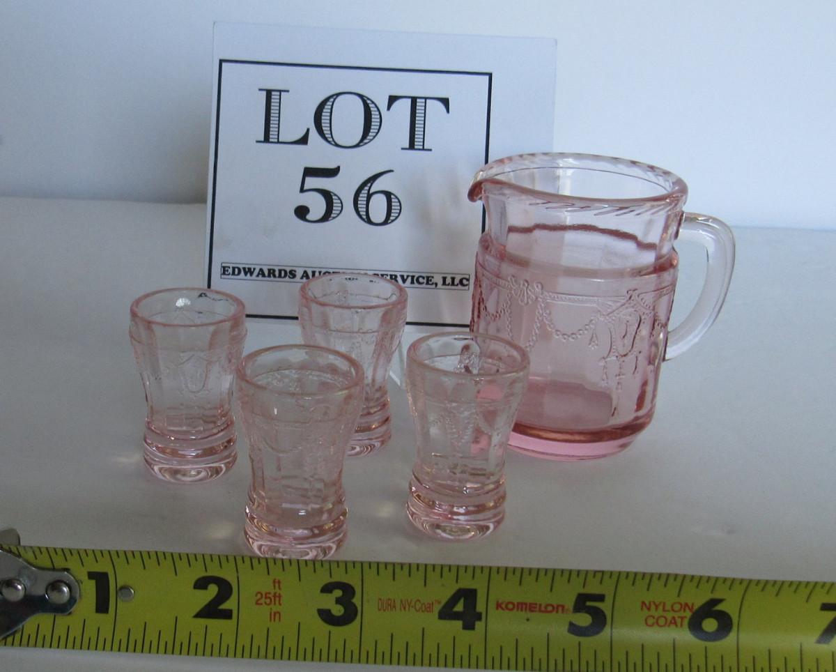 Child's Size Mosser Glass Pitcher and 4 Tumblers, Pink
