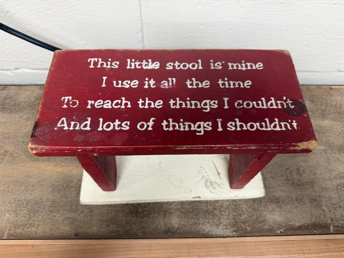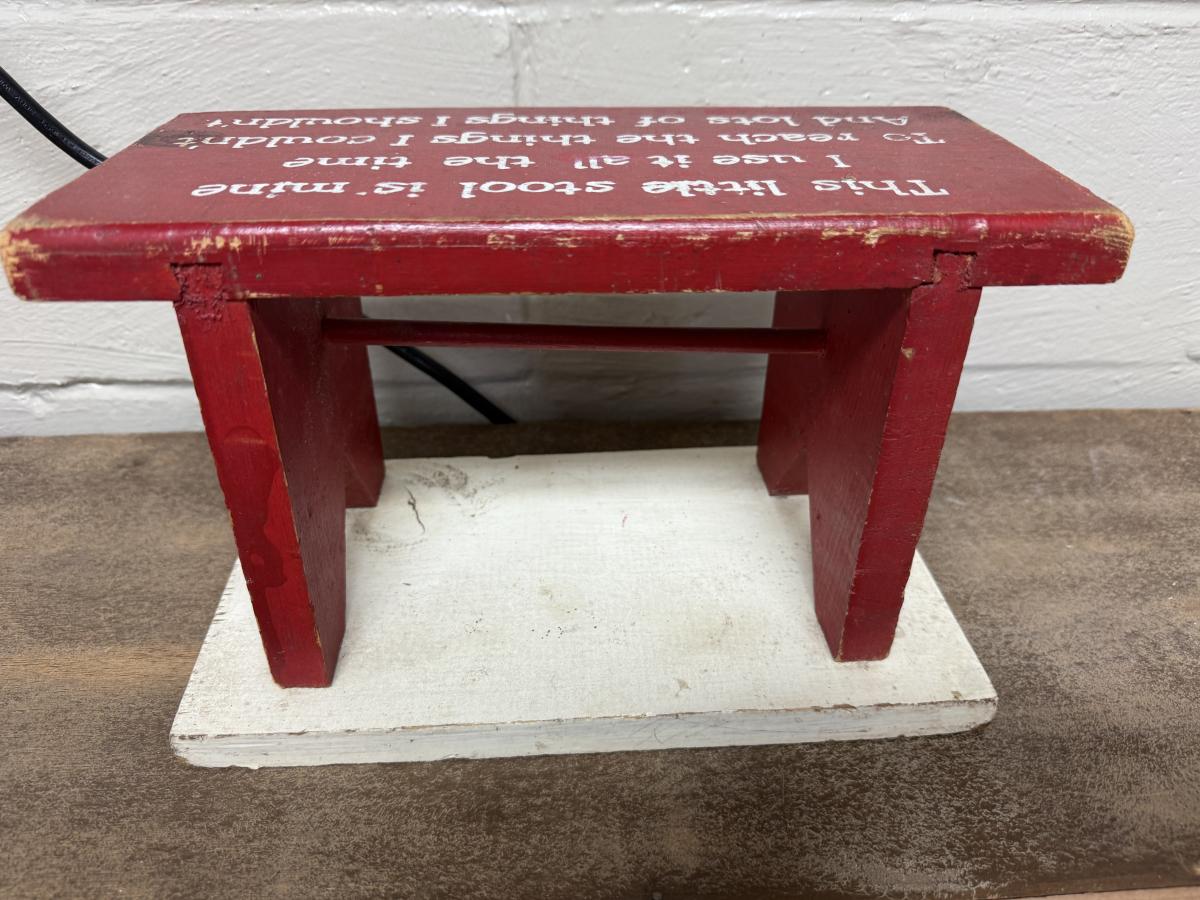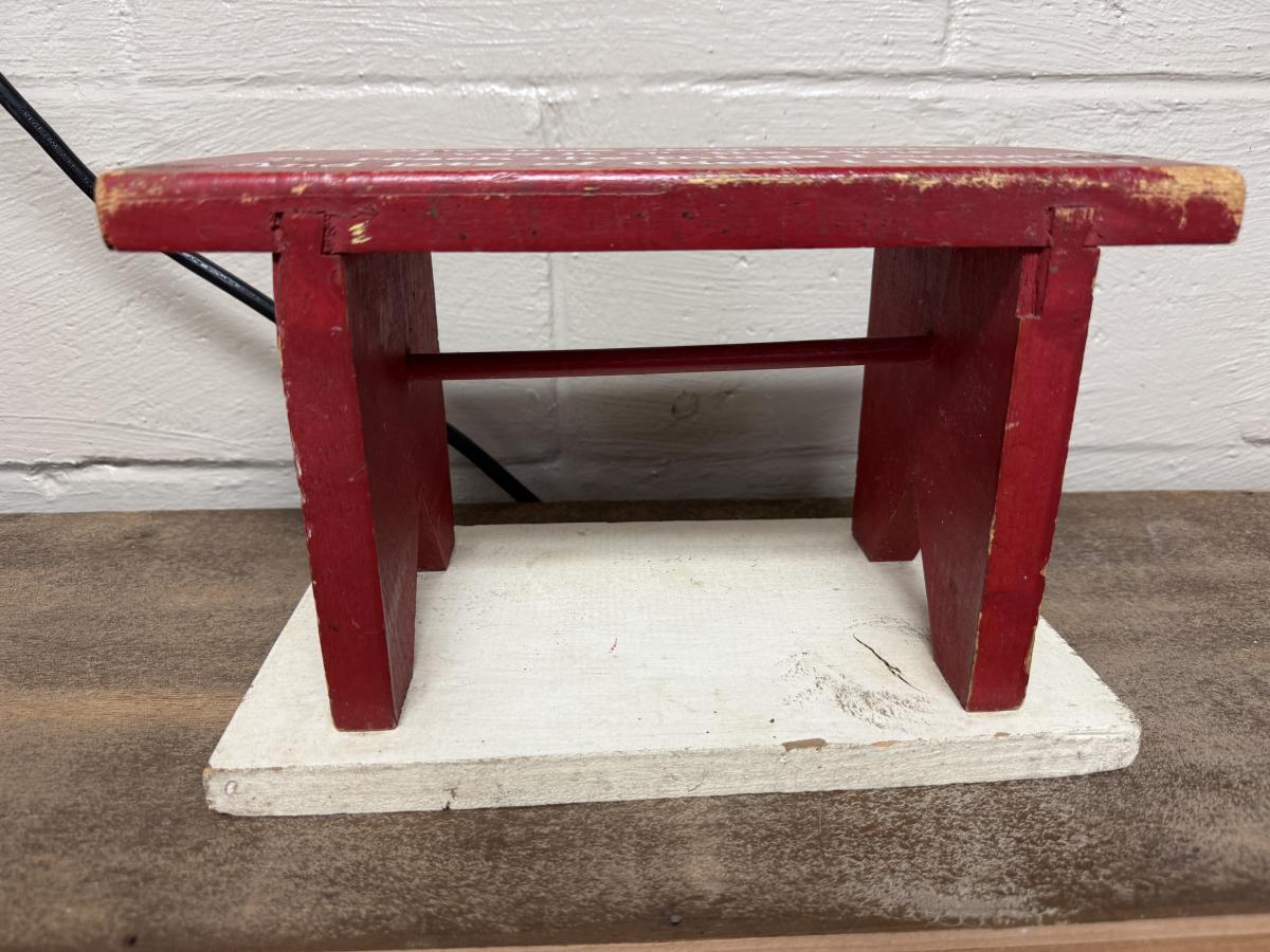Red wooden stool 12” L x 7 3/4”T