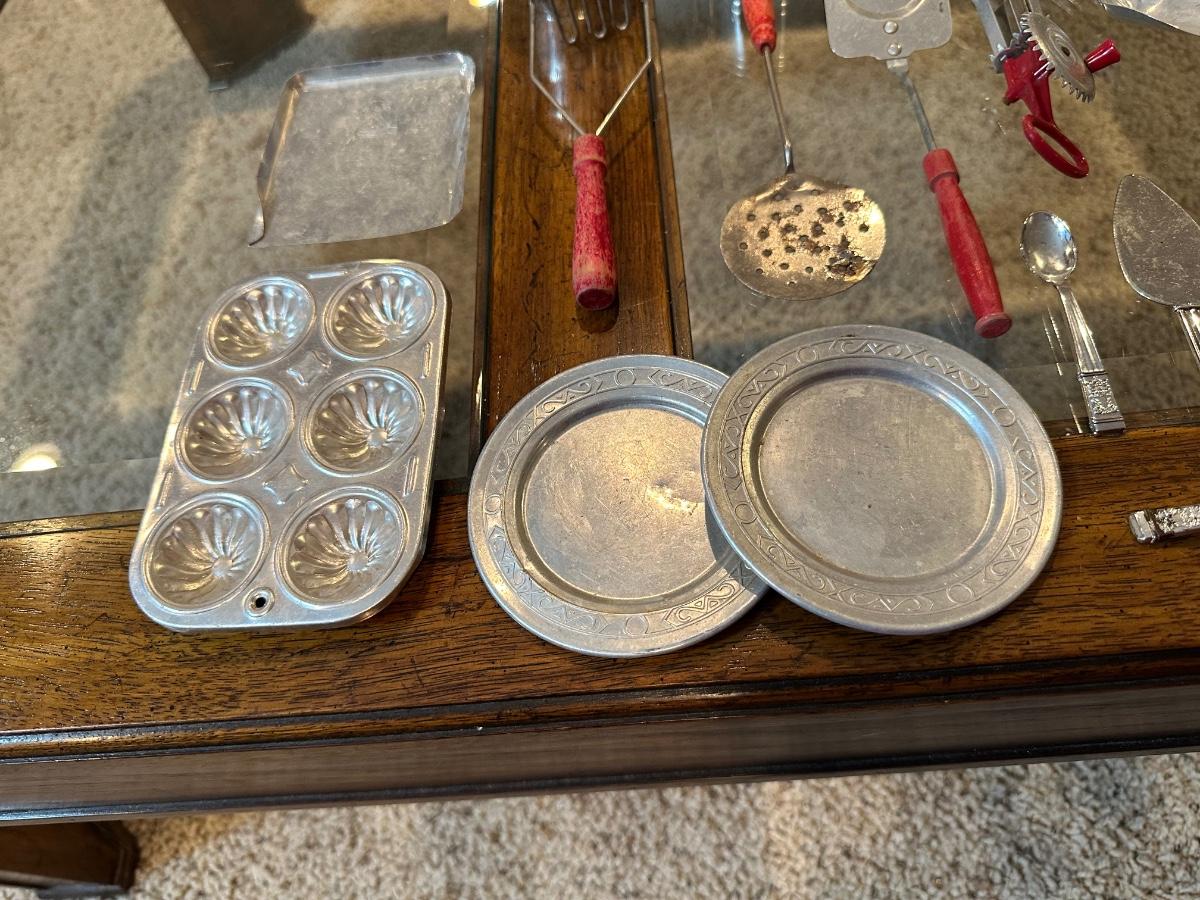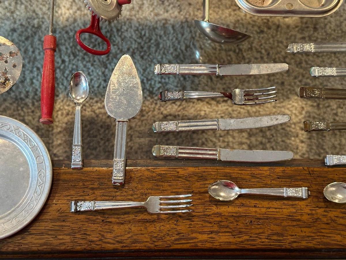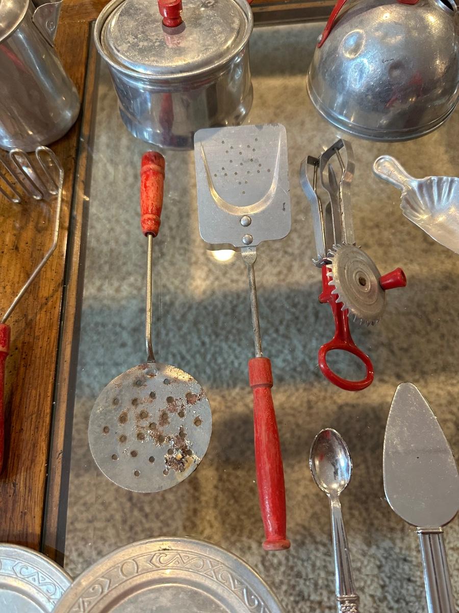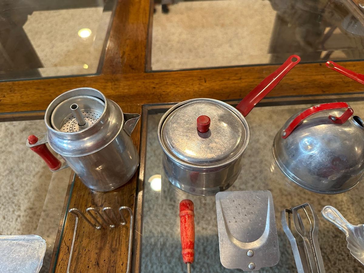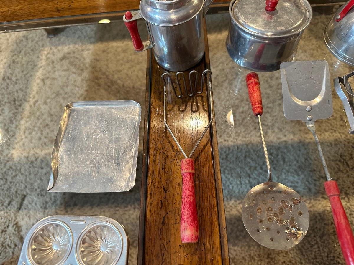 CHILD'S TIN PLAYSET DISHES AND UTENSILS