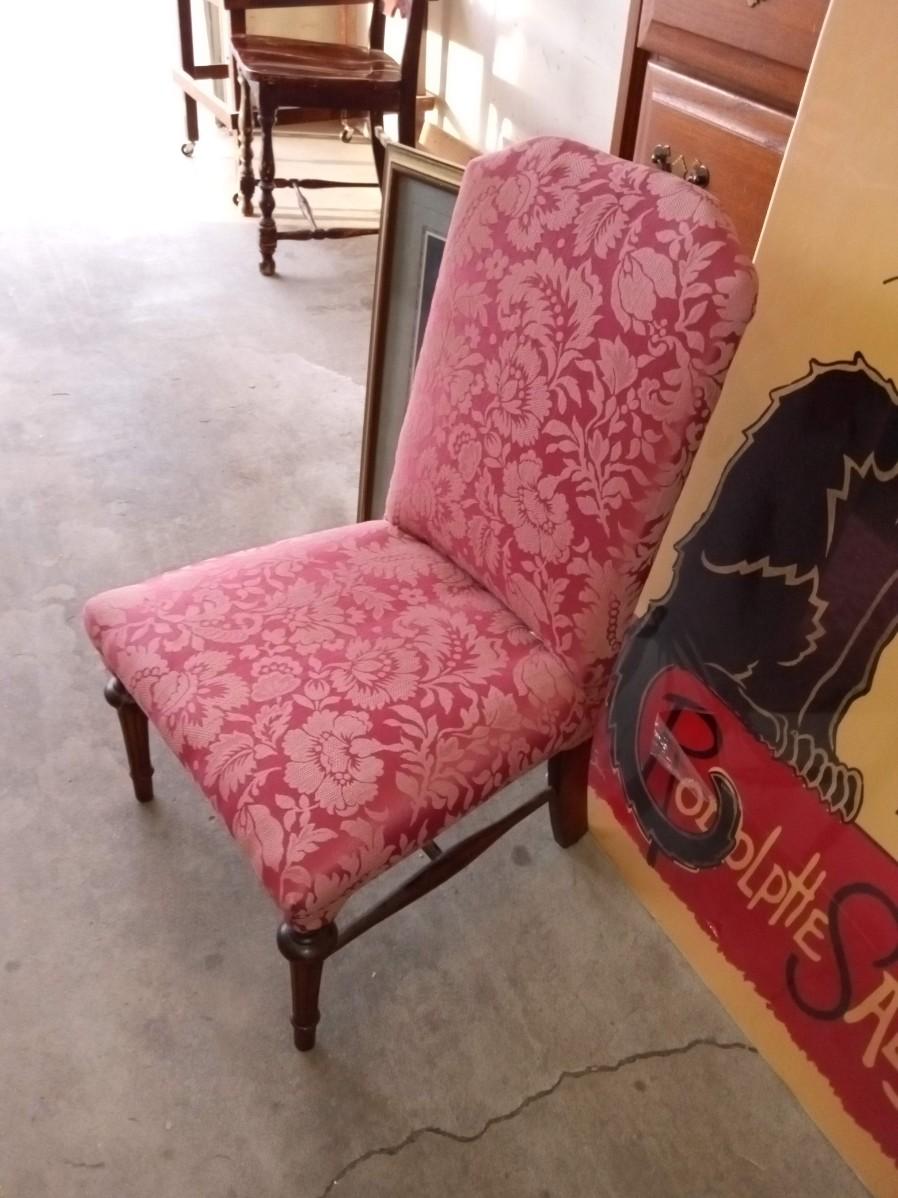 CHILD'S UPHOLSTERED CHAIR, FRAMED PICTURE AND POSTER