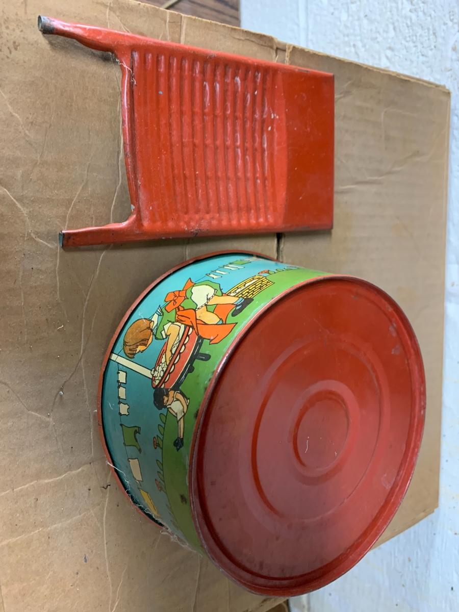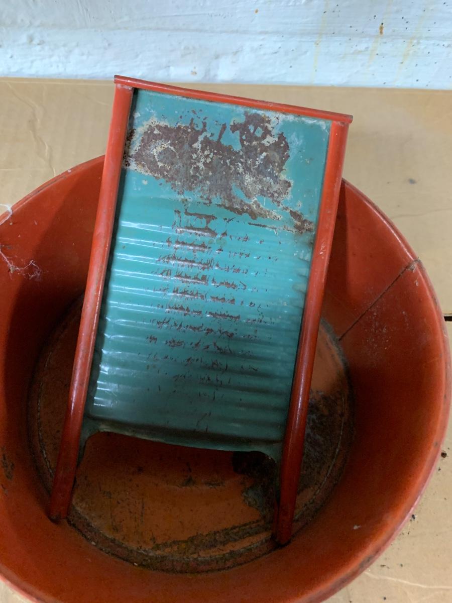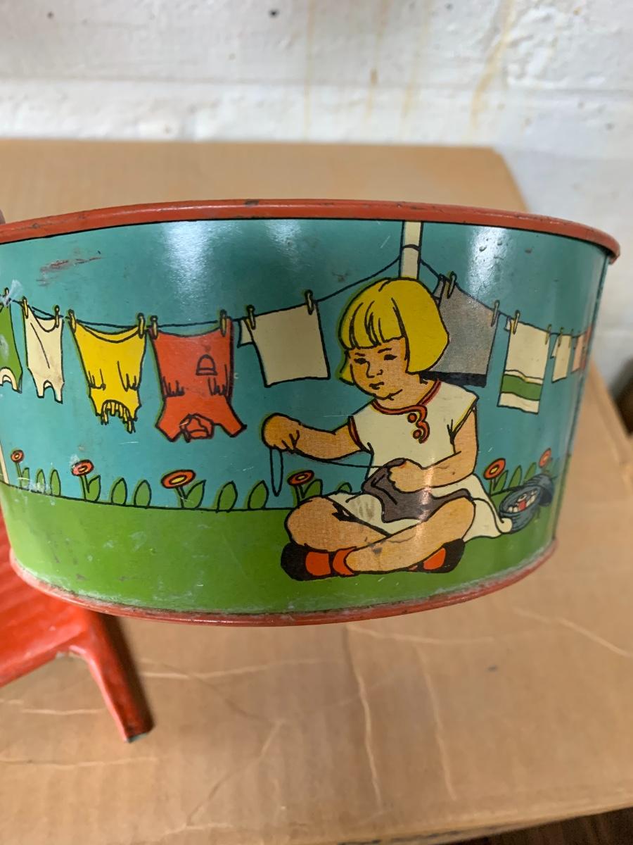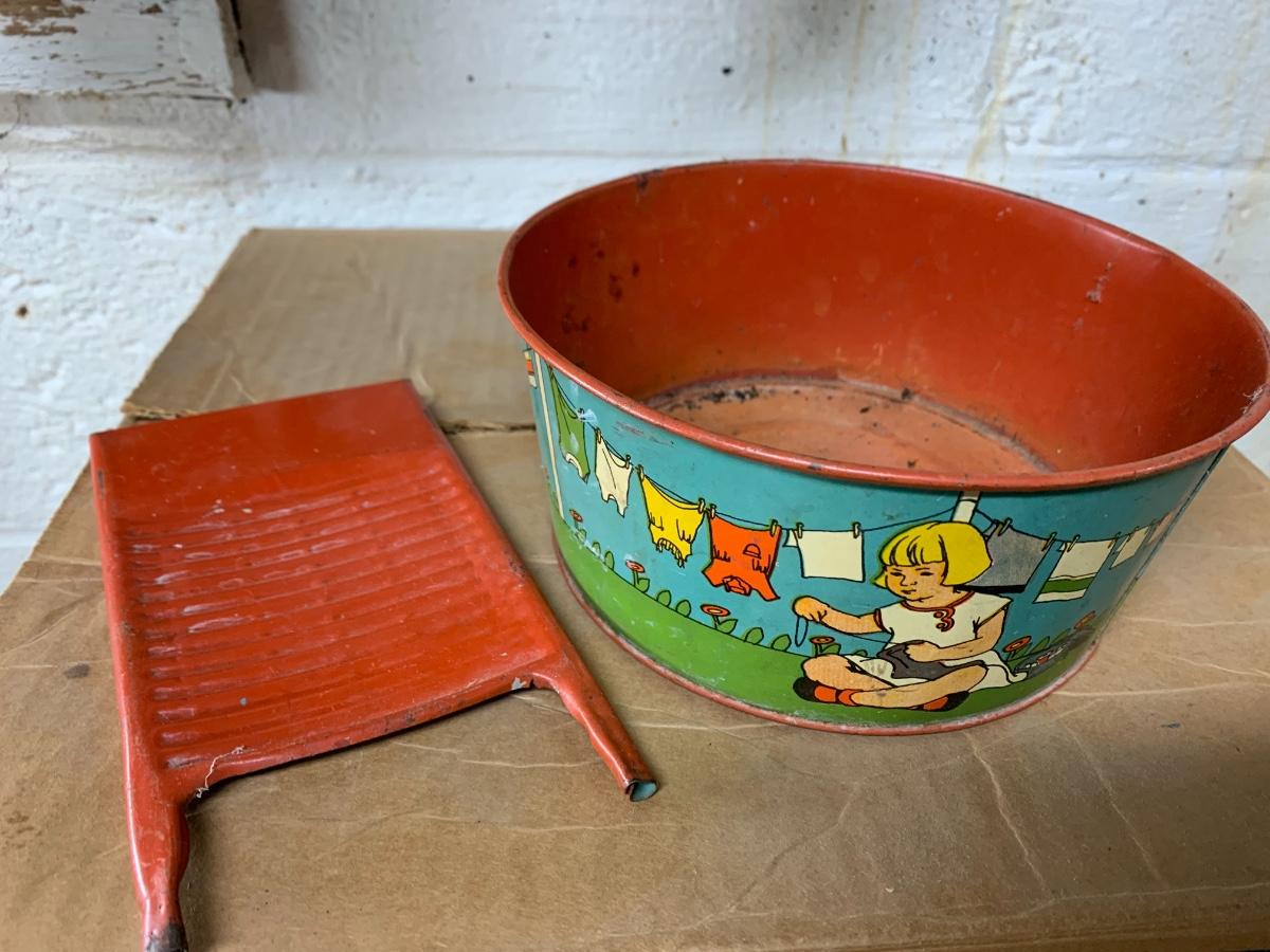 Child’s Vintage Tin Litho Metal Clothes Wash Board & Bucket